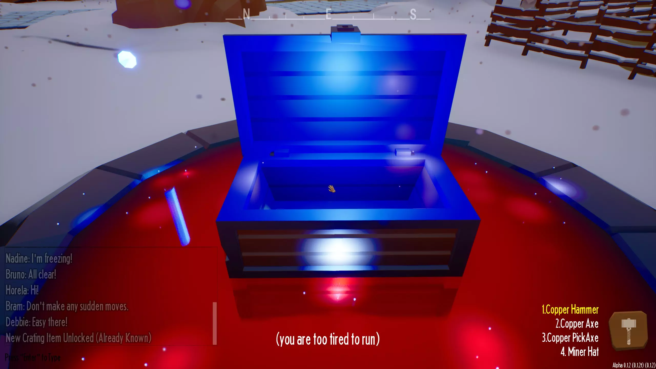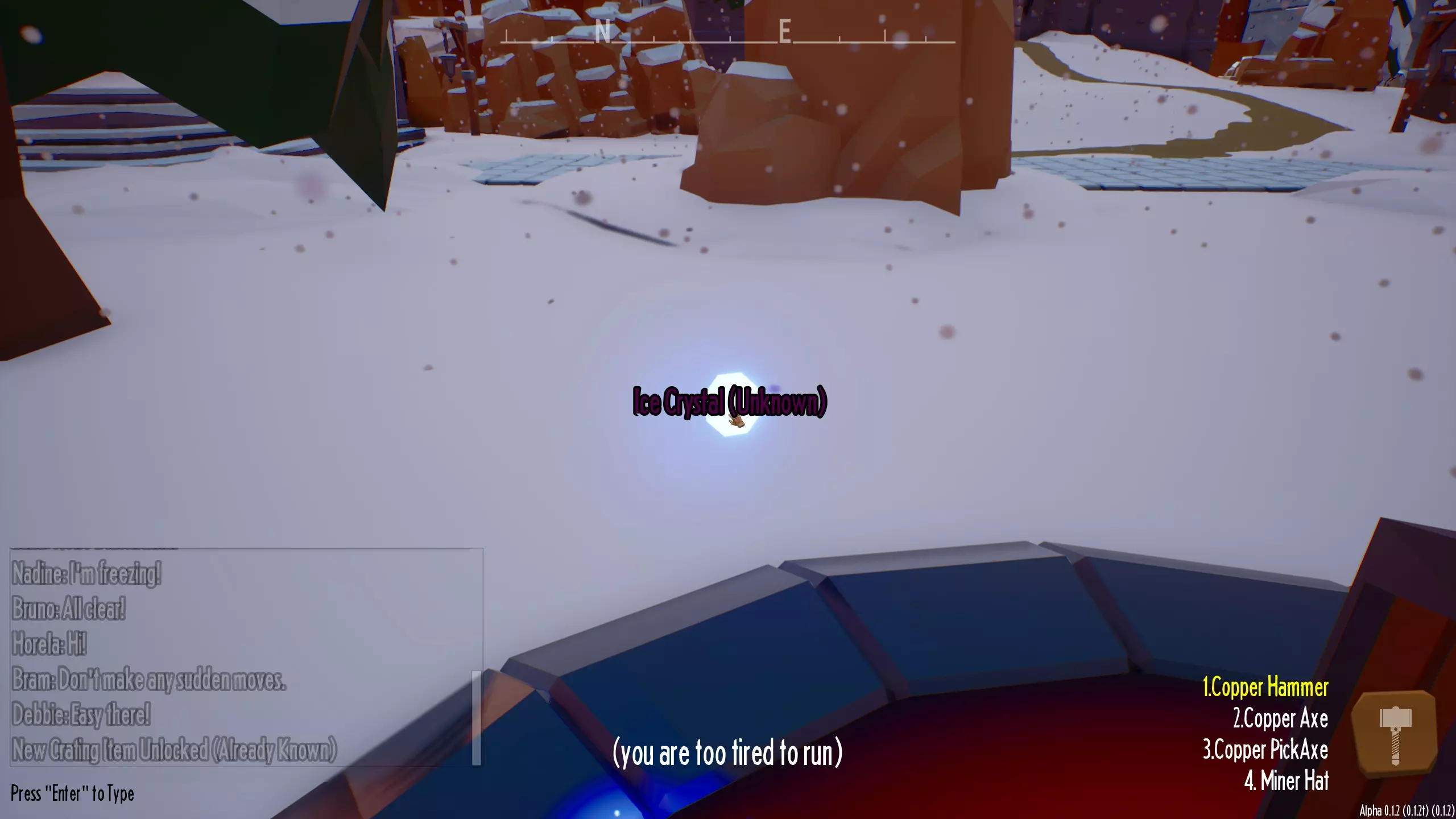 我找到了冰晶的新位置,它在新城镇里。 你需要知道的一切: 如果你不想被剧透,就不要阅读本指南。 在冬季城镇中,靠近那个你无法通过的大门处有一个传送门。我向下看,看到传送门里有蓝光,便点击了它。随后出现了一些立方体,点击它们会改变图案。只需匹配这些图案即可,而且会有多个回合。这些立方体生成的位置很奇怪,所以要时刻留意周围。完成后会出现一个箱子,里面有新的 crafting 物品(你左键点击时显然已经知道了),冰晶也在箱子里。希望这对你有帮助!别忘了带上采矿头盔。