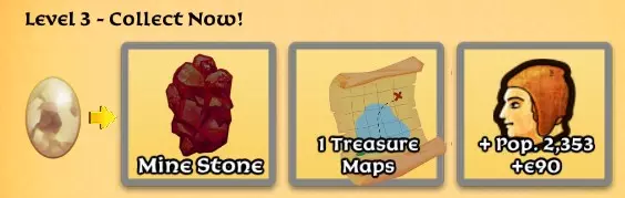 矿石是从矿场获取所需资源的一种方式。免费领取一个吧! 藏宝图!派遣你的船只去探索发现。会是材料?矿石?金币?你知道肯定有经验值在等你。 工人不够用吗?达到3级即可获得一些免费帮手,无需建造城堡主楼。 这里没有你需要的东西?升级到4级吧。 4级