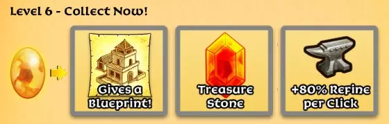每个关卡都需要蓝图,所以这个加成在整个游戏中都很有帮助。 想不用点击就能打开宝箱?使用宝藏石吧。 哇!精炼点击提升80%相当于4个等级提升的加成! 还想要更多?升级到7级 7级