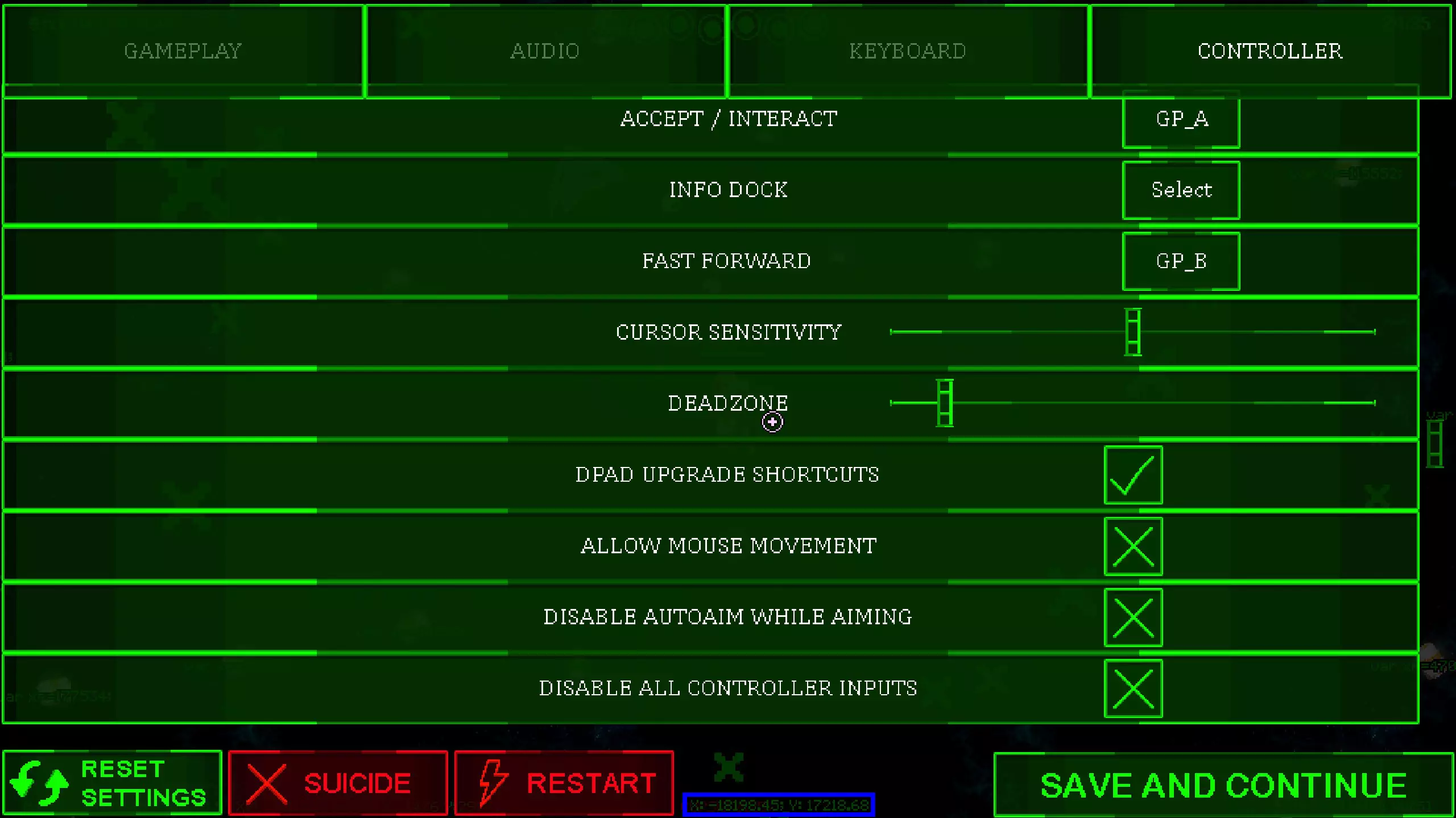 第二步 如何查看坐标: a) 暂停游戏。坐标显示在屏幕底部。