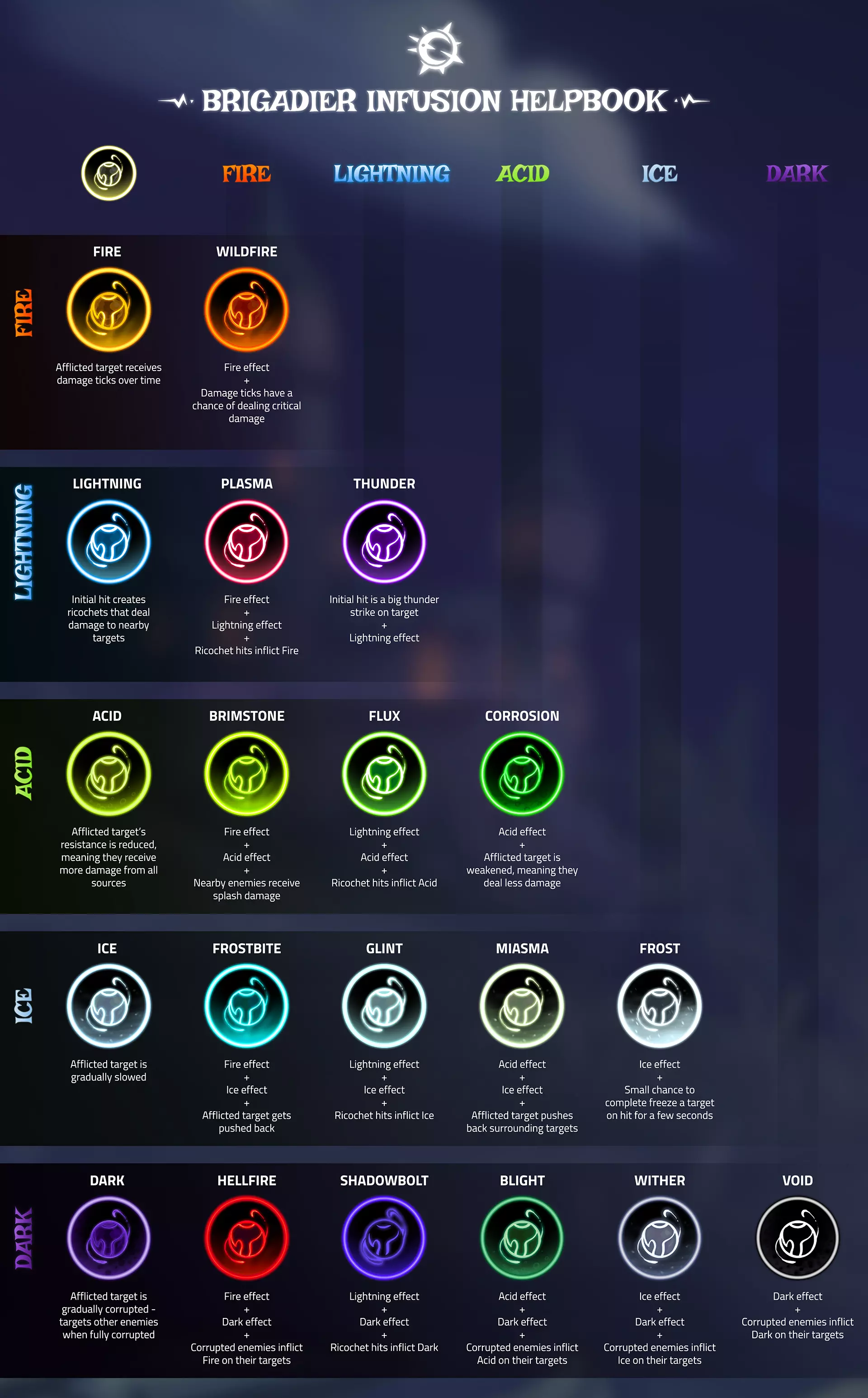 虽然我们最初考虑过加入第六种元素,但最终决定通过改进游戏中已有的元素设计,能为玩家带来更多价值,让每种组合都不仅仅是各部分的简单相加。请看……【准将元素融合指南】,这是1.0版本中所有元素的完整解析。