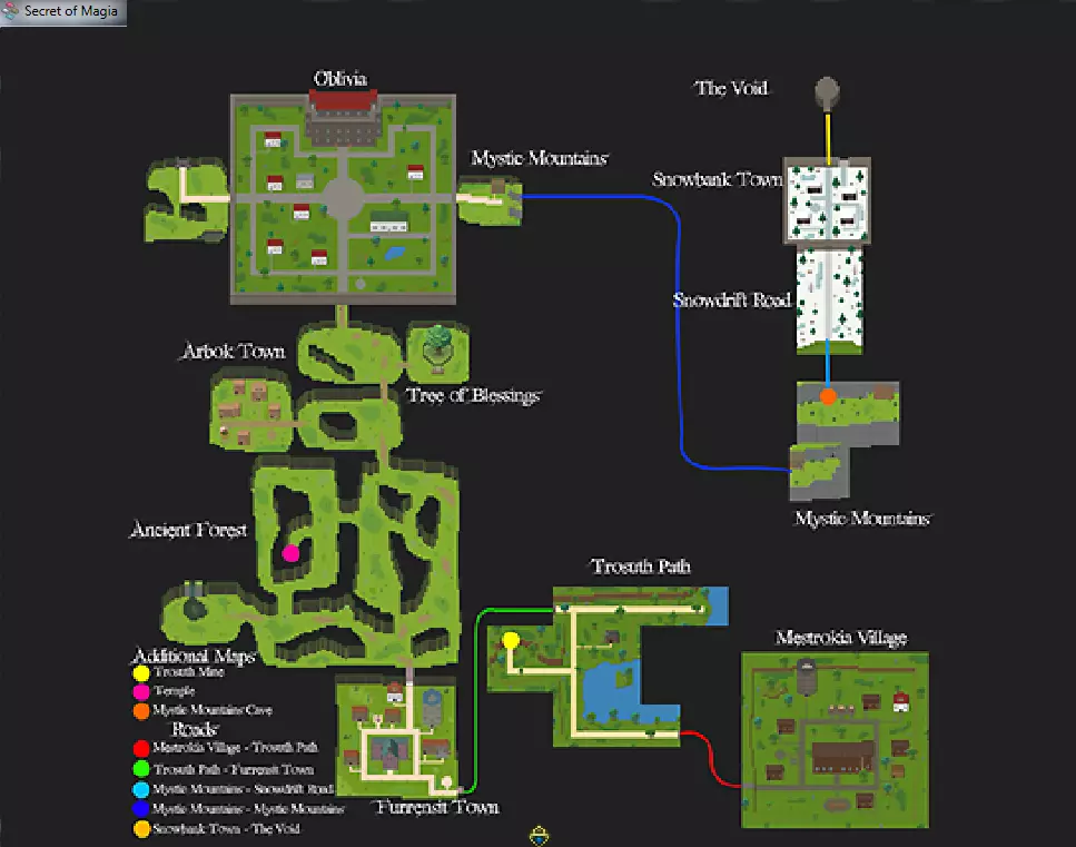 抵达神秘山脉 - 你已到达神秘山脉,一个充满恐怖神秘气息的地方。 要解锁此成就,从遗忘之地向东走,与入口附近的马夫交谈。他会提出以25f的旅费带你前往神秘山脉。支付费用后,你就能获得该成就。 进入洞穴后上楼,沿着路径前行,直到找到另一个洞穴,你可以通过梯子向上攀登。进入洞穴即可开始地牢挑战。 大地地牢 前往西北区域,然后在出口的正南方寻找迷你 boss。它不会移动,因此很容易击杀——只需留意附近的其他敌人,尤其是速度快、呈蓝色的那些。 首领:伊阿古菲洛斯 如果你使用灵魂破碎者,这场战斗会非常轻松。只需疯狂点击攻击键,在 Boss 反击前将其击晕控制。 没有【灵魂破碎者】的话会更具挑战性——伊阿古菲洛斯会: - 对你释放蛛网(使你无法移动) - 对你施加中毒效果 所以要巧妙闪避并全力攻击。 Boss 奖励 大地元素石 斯派莱格斯之刃(一件无用的武器,一击就会耗尽你所有的法力,而且没有劈砍效果) 完成后,返回神秘山脉继续你的旅程。 第四部分 - 冰霜 ❄️ ❄️ 4. 冰霜地牢 神秘山脉 - 向下走,从北侧出口离开。 - 继续从北侧出口前进。 - 在城镇北侧的火炬处存档。 前往东北侧出口。 冰霜地牢 小 Boss 在东南角。到达那里有难度,击败它则更难。Boss:Deus Glacies -站在房间中央坚守阵地并持续攻击。Boss起初可能会攻击你,但很快会进入被动状态。抓住这个机会。 掉落物品: Elementum Veneatis Ice Blizek(仍弱于灵魂破碎者) 击败Boss后返回雪岸镇。 5. 最终之息 雪岸镇 从西北出口离开。 最终之息 Boss:??? 这个最终Boss融合了所有之前Boss的攻击方式。 恭喜你击败《Secret of Magia》! The Silver Crusade