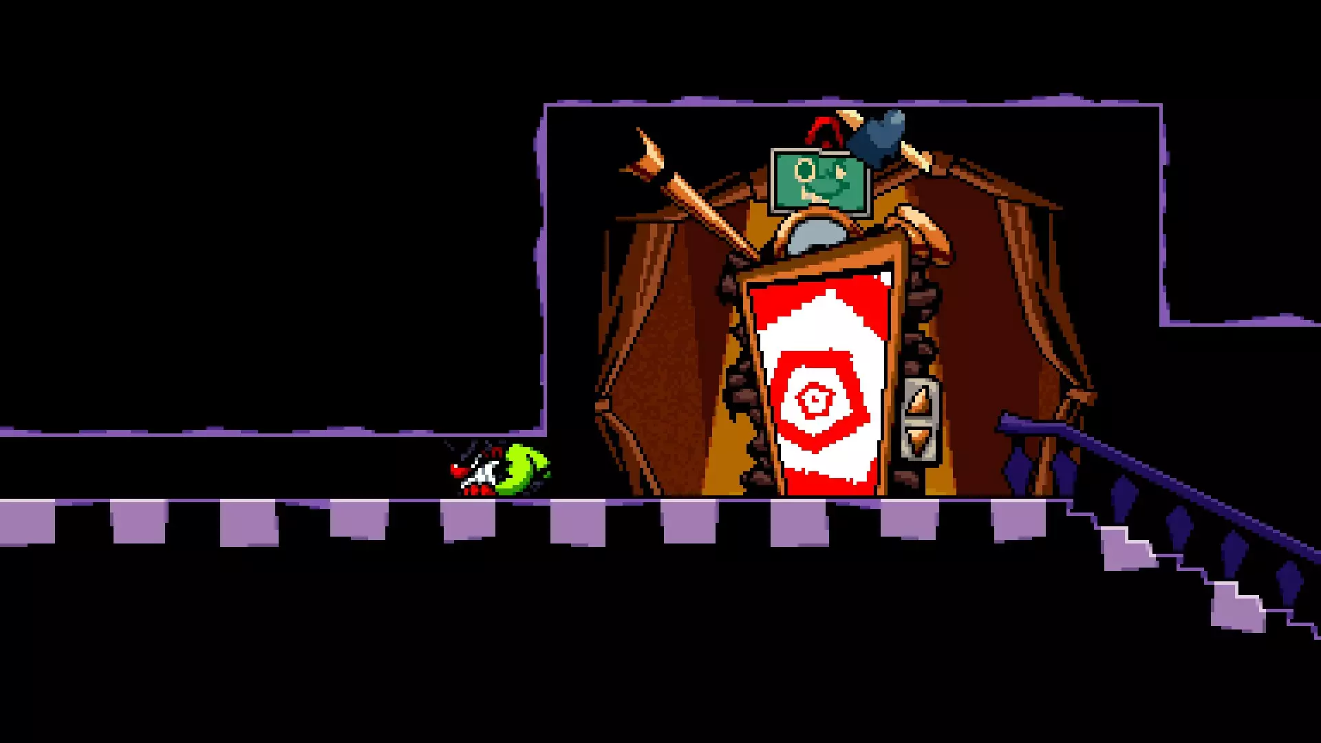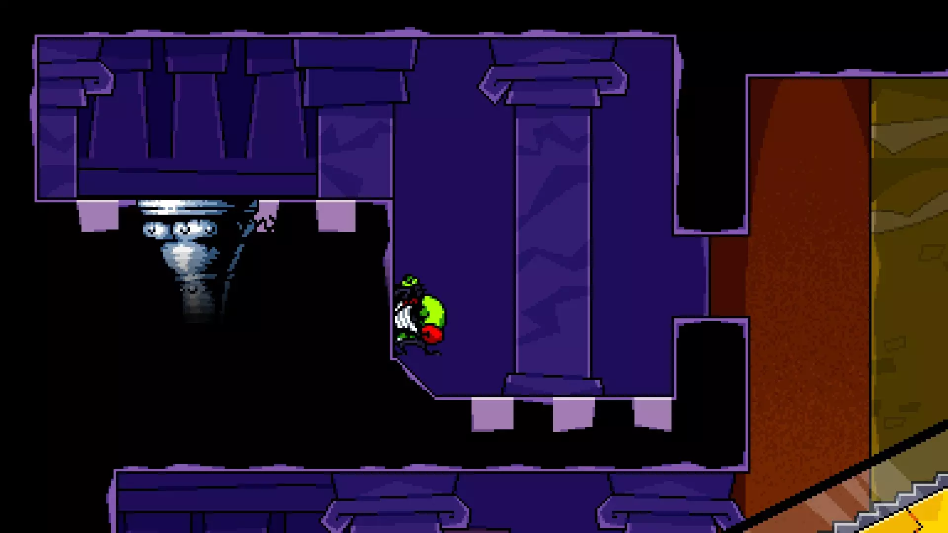 该物品位于【Maulbuster战斗】入口附近的左下角,需通过球体形态进入。借助【Smallbuster战斗】入口附近的斜坡,这次要登上平台并跳到地板顶部。只有在通关游戏后才能进入,此前会被黑雾阻挡。 它通向整个游戏中最难的平台跳跃关卡,关卡内设有检查点。由于本指南不涵盖该关卡的通关方法,建议参考相关视频攻略了解具体操作。 关卡终点可获得【Tape】,目前该物品暂无实际作用。若你未从【Brulo】处购齐所有【Tape】,它会作为免费【Tape】补充;若已购齐,则不会有任何效果。