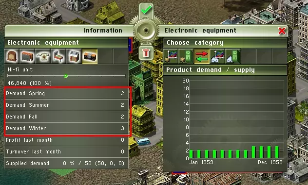 你可以在游戏中点击任何销售该产品的商店来查看这些数值;季节性需求会显示在弹出窗口的左侧。