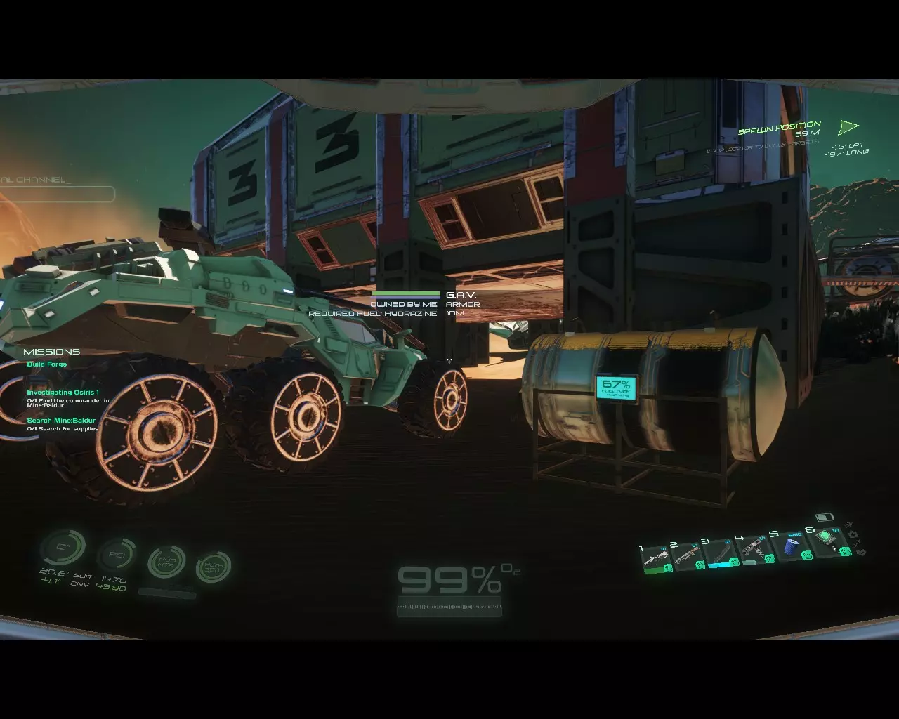 GAV/载具加油指南 目录 这是我的第一篇指南,如有任何需要修改的地方,欢迎提出。希望本指南能帮到你。 首先,你需要准备: - 桶 - 玻璃容器 - 氢气和氮气,用于制作肼燃料 此外,你也可以使用气体罐和液体罐,虽然它们不是给GAV加油的必需品,但能让游戏后期的操作更便捷。