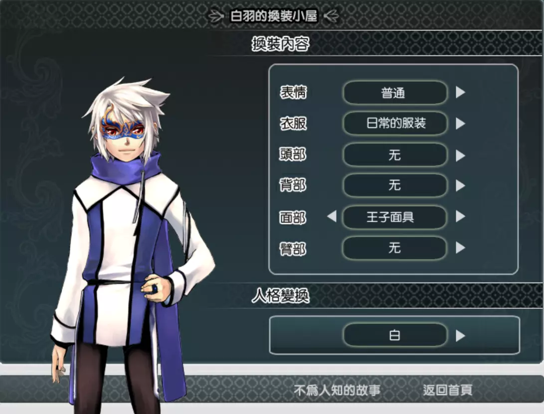 属性:仪态+50 获取:1059年01月比武大赛夺冠 2. 王子面具