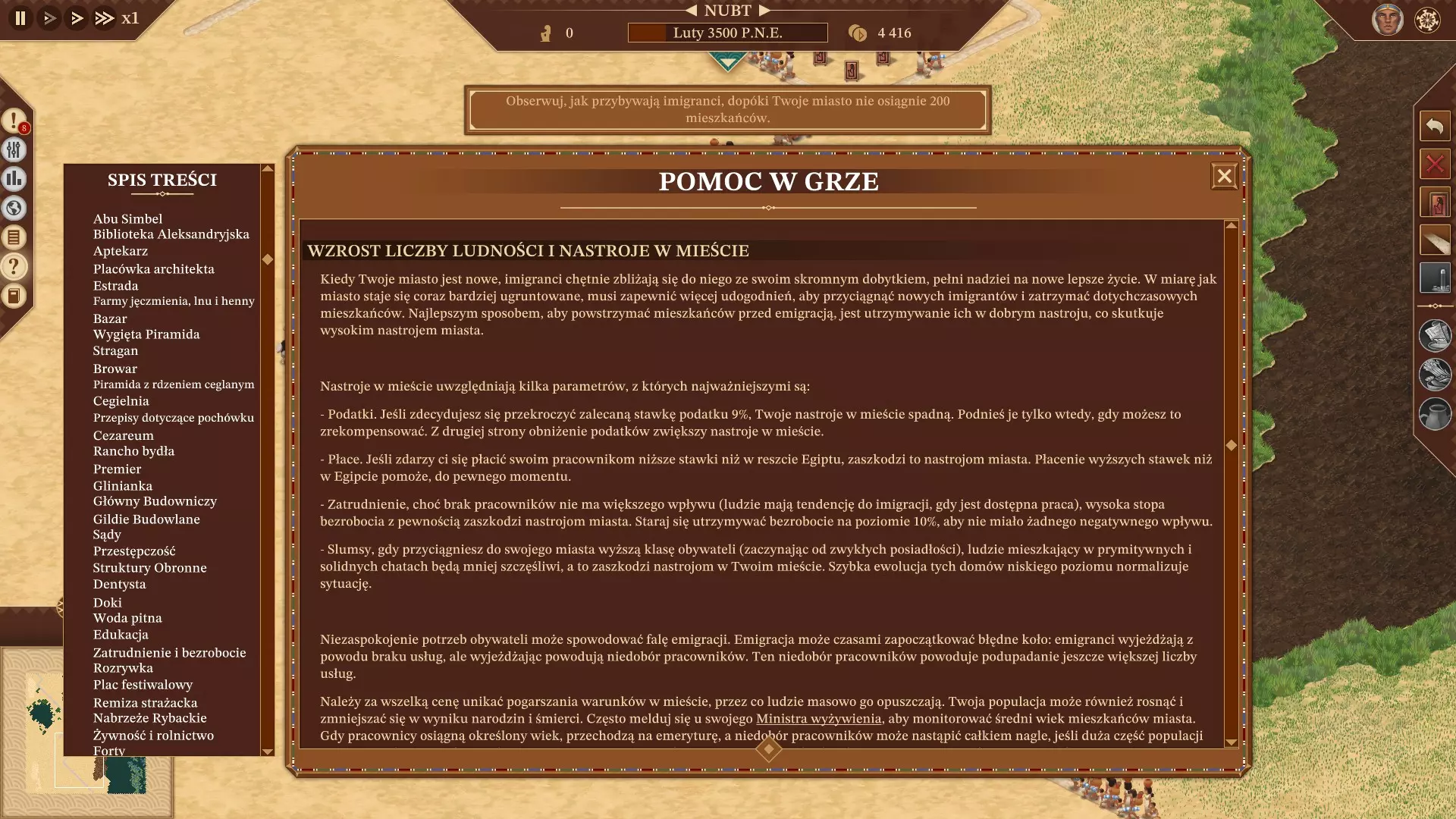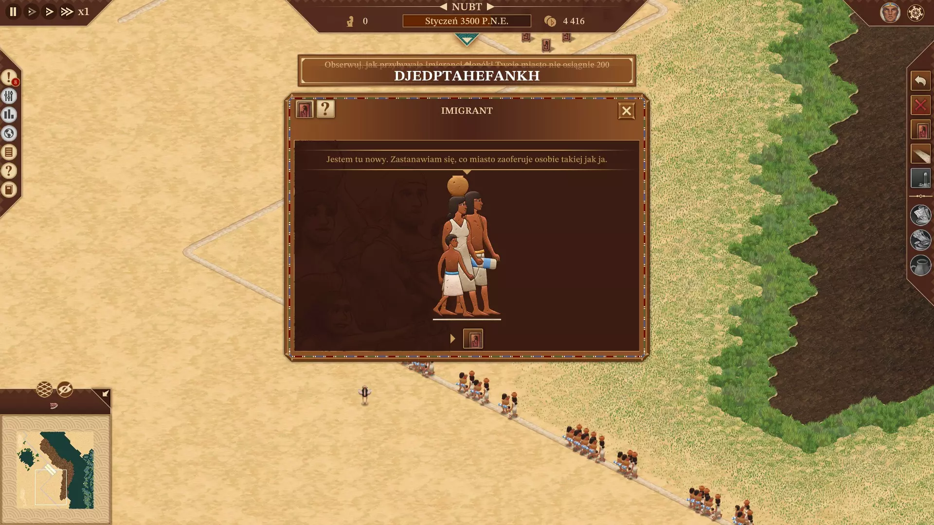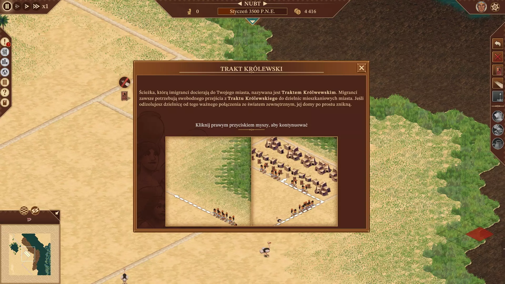 该模组由多个文件组成。 PolishTranslateLoader.dll:模组的主文件,负责加载其他文件。(运行必需) LangTextLoad.dll:包含游戏所有文本的翻译文件。(运行必需) LangMissionLoad.dll:包含任务介绍的波兰语音频文件。(准备中) LangWalkerLoad.dll:包含市民语音的波兰语音频文件。(准备中) 安装步骤: 1. 下载BepInEx(x64)的最新版本或波兰语化要求链接中指定的版本。当前最新版本为5.4.23.4。 2. 从Nexus Mods网站下载所需的波兰语化文件。将BepInEx解压到游戏主文件夹(右键点击游戏标题 => 点击“管理” => 点击“浏览本地文件”)。解压BepInEx后启动游戏。启动游戏后会在游戏安装目录生成所有剩余所需的文件和文件夹。在“$Folder_Instalacji_Gry$ BepInEx”文件夹中的“plugins”文件夹内,将解压后的波兰语本地化文件复制到“$Folder_Instalacji_Gry$ BepInEx plugins Localizations Polski”文件夹中。启动游戏,启动后在游戏选项中应该可以设置为波兰语。 如果无法使用波兰语的解决方法:检查是否正确执行了上述步骤,若已正确执行,请打开“$Folder_Instalacji_Gry$ BepInEx”文件夹,并在模组的评论中发送“LogOutput.log”文件的内容。 波兰语音频:临时支持波兰语音频。要启用任务的波兰语描述以及居民的语音,需要拥有2001年由Play-It!发行的《法老王与克丽奥佩特拉》(法老王:黄金版)原版游戏。进入之前创建的名为【Polski】的文件夹,该文件夹中应已复制有LangTextLoad.dll和PolishTranslateLoader.dll文件。 创建一个名为【Voice】的新文件夹并进入该文件夹。 进入《法老王与克丽奥佩特拉》(法老王:黄金版)的游戏安装文件夹。 然后进入【Audio Voice】文件夹。 将步骤4中文件夹的所有内容复制到步骤2中创建的文件夹。 画廊