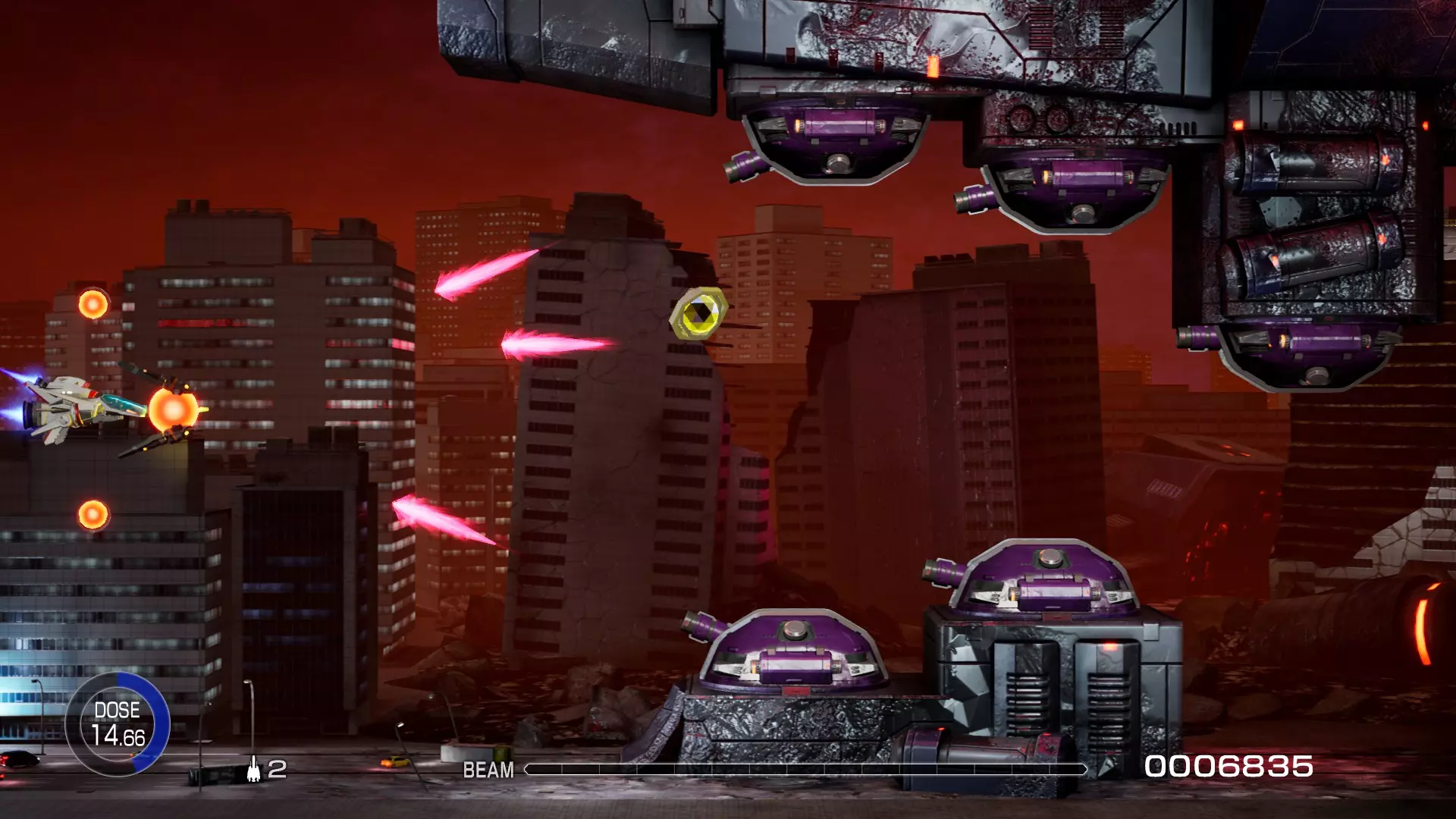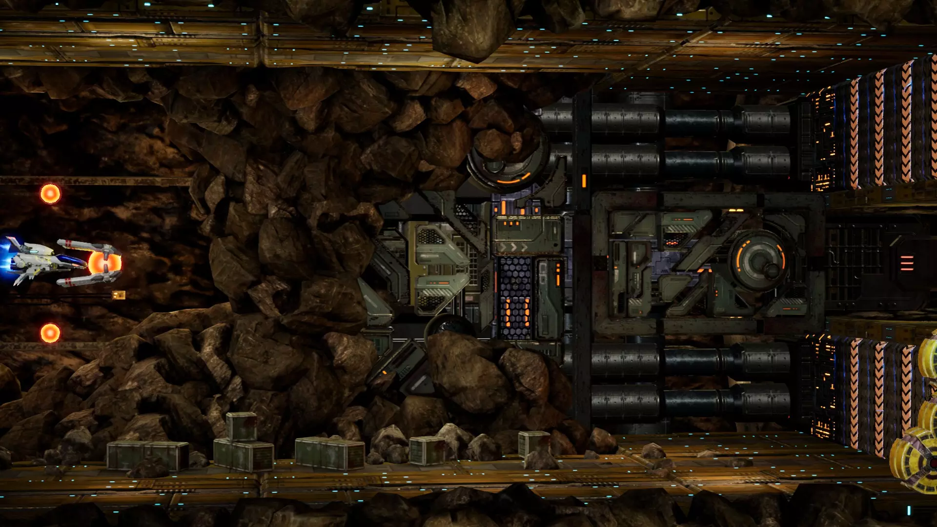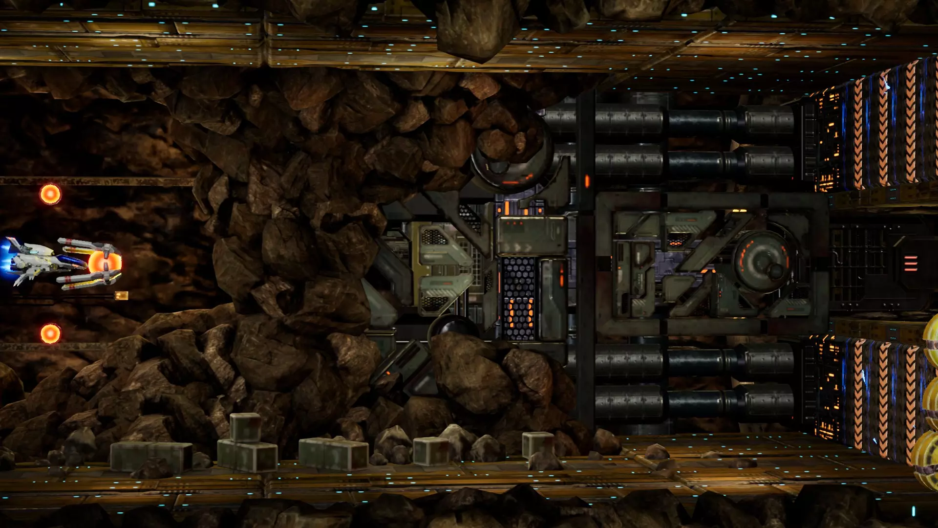 1. 启动游戏 2. 选择一艘飞船 3. 选择致敬关卡 最高图形质量设置 即使将所有设置调至超高,其画质也仅达到主机级别。若要使所有纹理完整且不受限制: 前往:C: Users YourUserName Saved Games RTypeFinal2 Saved Config WindowsNoEditor 编辑Engine.ini并添加以下内容: [consolevariables] r.TextureStreaming=0 r.Streaming.PoolSize=0 对比截图:这些均为1080p最高设置下的画面 Delta关卡:炮台上的纹理质量 警告:这会显著增加加载时间