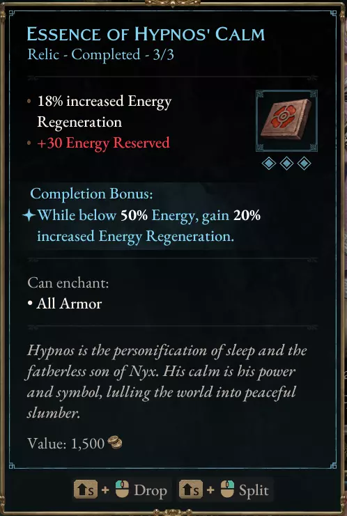 护甲:【修普诺斯之息】(遗物) 这件装备能极大帮助你应对该流派极高的能量消耗,我强烈推荐。