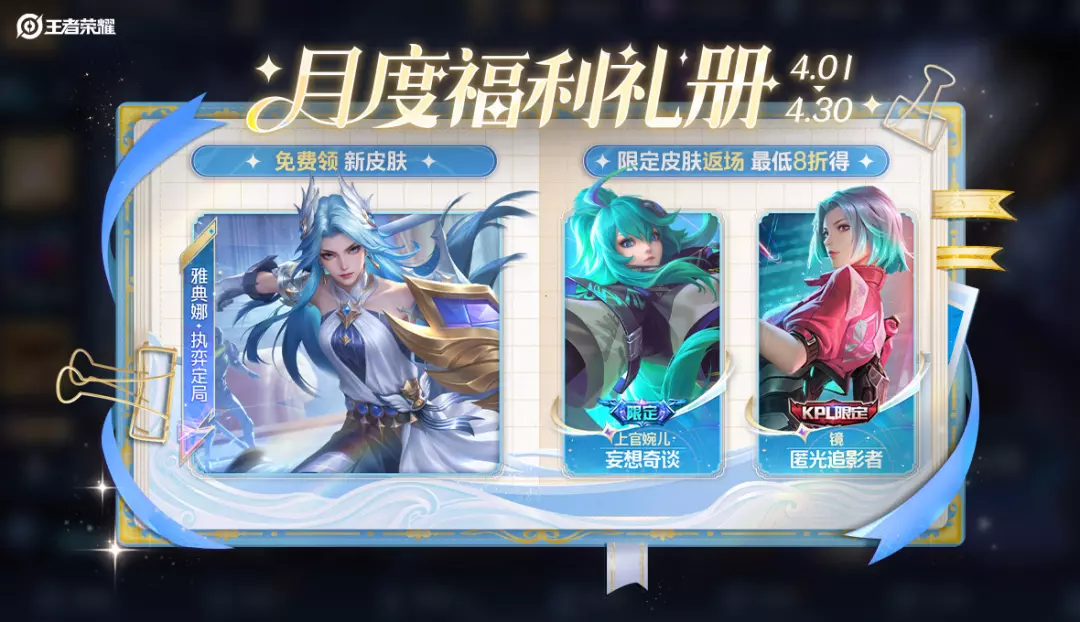 【福利3】4月月度福利礼册开启,雅典娜新皮肤加入免费奖池