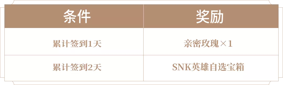 累计签到送亲密玫瑰、SNK英雄自选宝箱!