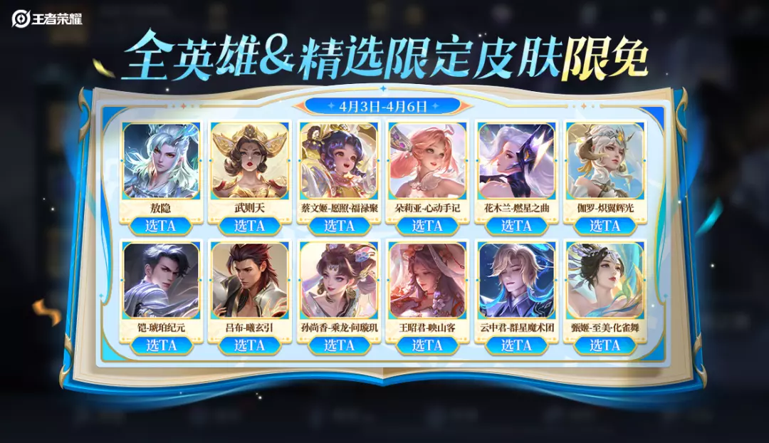 【福利5】全英雄及部分精选皮肤,假期限免畅快玩