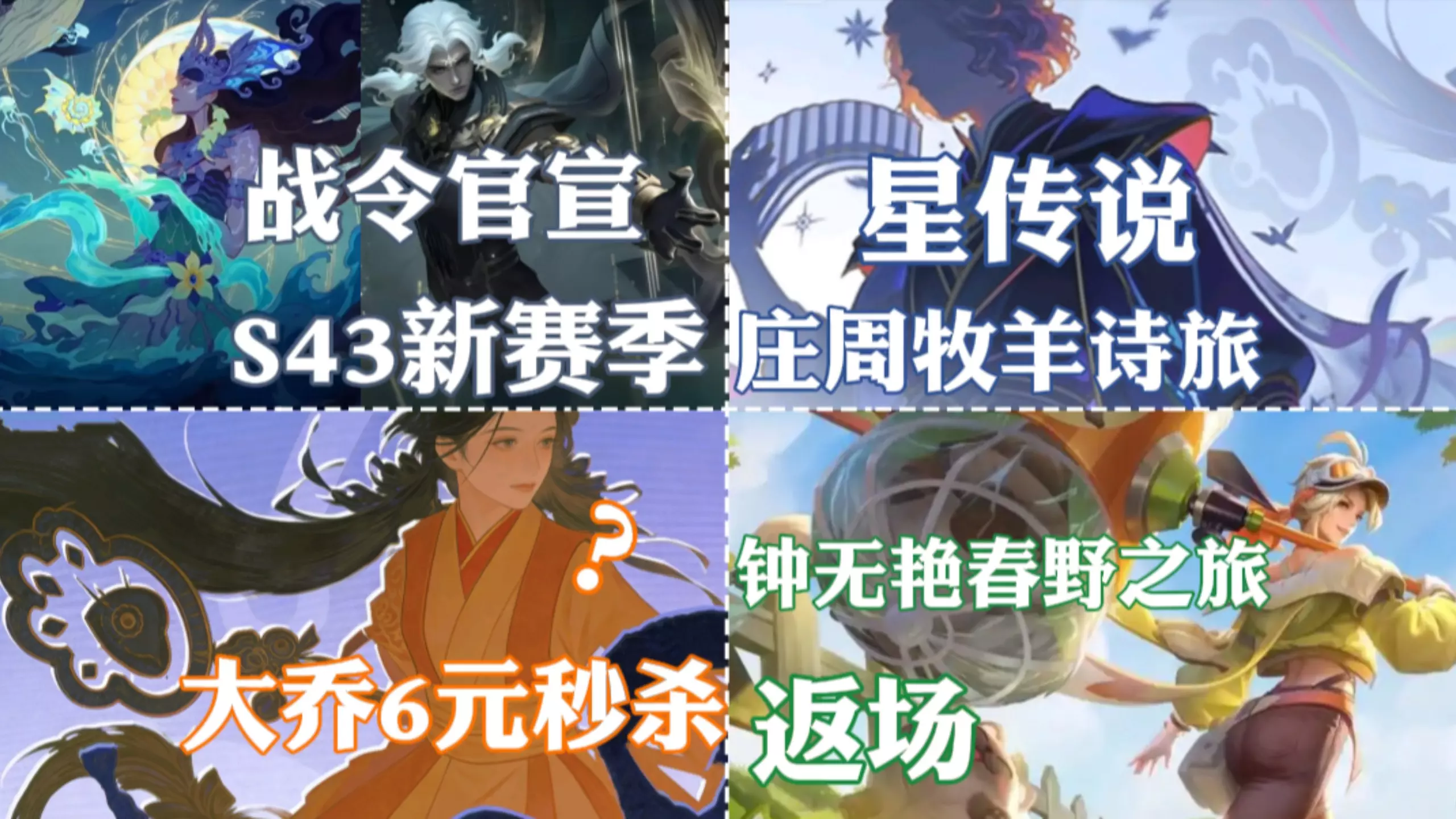 王者荣耀 S43新赛季战令官宣,庄周星传说上线,6元给大乔,留48碎片巨赚