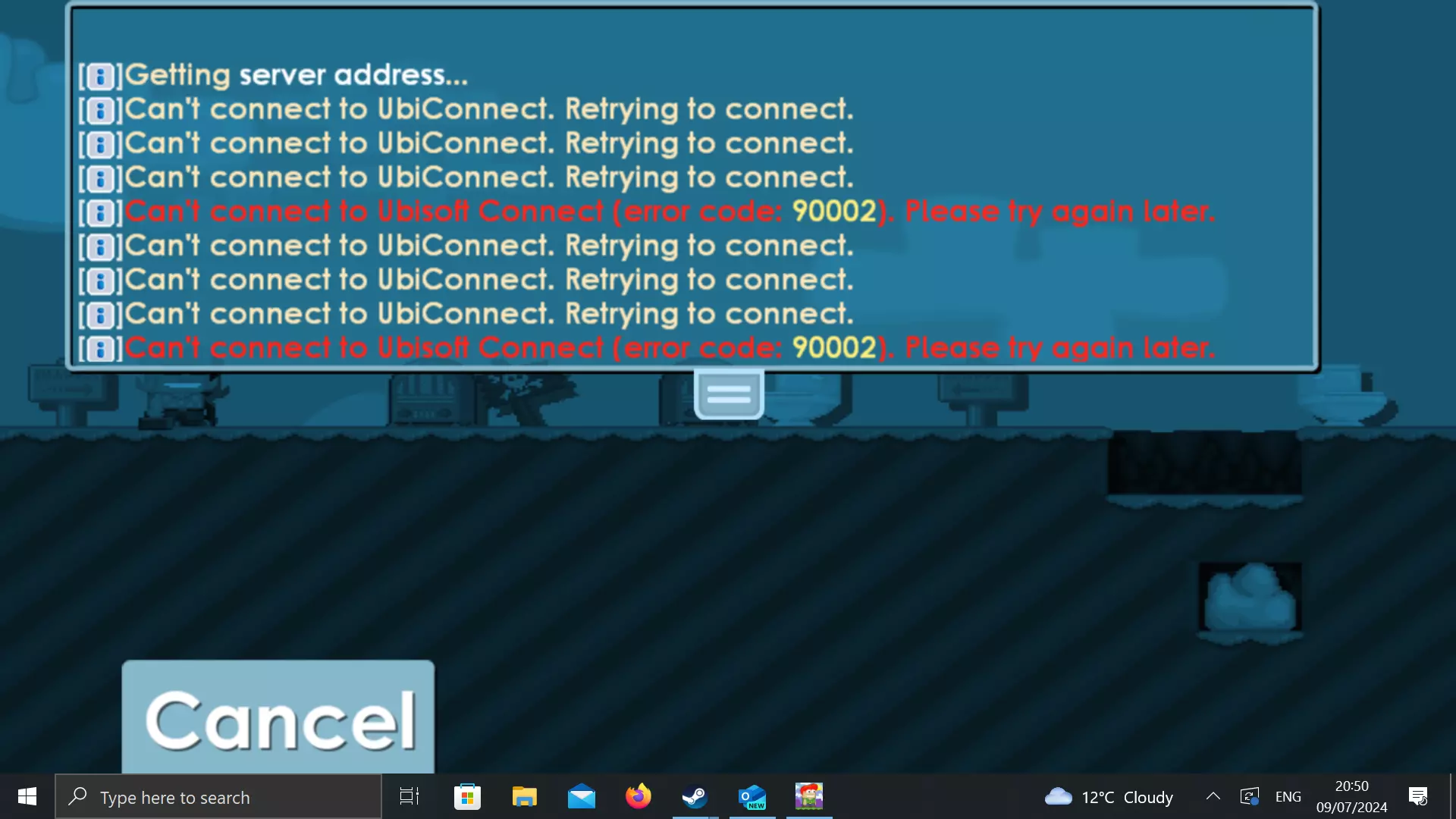 你需要点击“关联账户”。完成此操作后,Growtopia 将启动,此错误应会消失。 错误 90002:无法连接到育碧连接