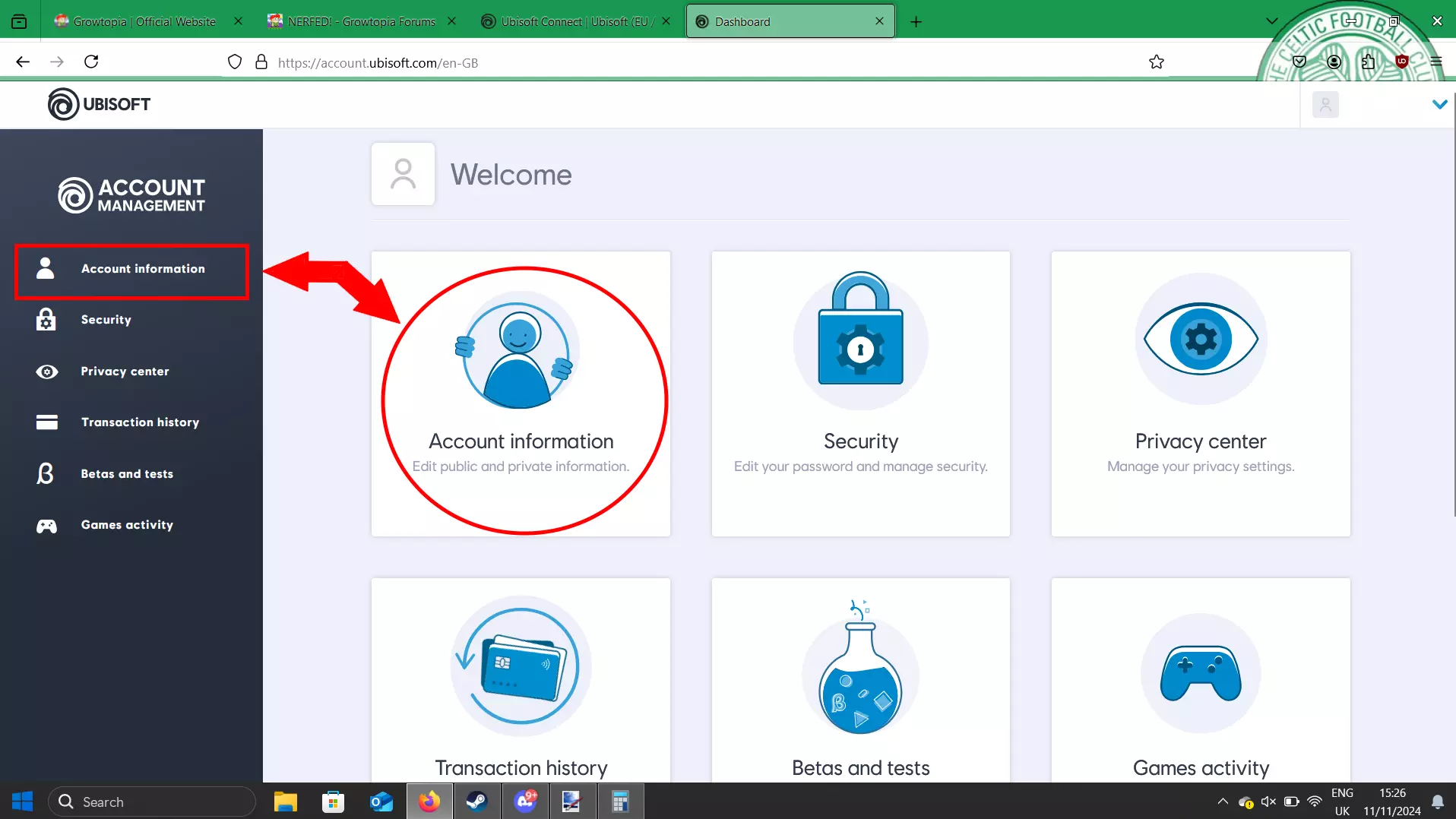 进入账户管理后,前往账户信息,操作如下。