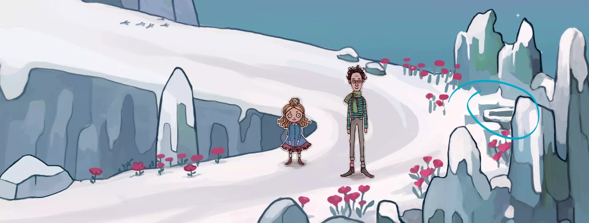 从敞开的坑中取出镜片。 回到我们的岸边。 走向小船。经过旅途后,它受损严重,急需修理!用针线包修补船帆。接着用船上的带钉木板,用石头把钉子钉好。太好了,现在小船修好了! 在前往营地的路上,在河边停下。在背包里将蘑菇和饼干盒组合起来。我们已经在河边使用了蘑菇盒子——得到了半成品蘑菇汤!将鱼竿与鱼饵组合,然后放到河边——观看过场动画——在背包中获得鱼。 营地。从背包中取出干树叶和大树枝。用打火机点燃篝火。把半成品蘑菇汤放在篝火旁。在背包中把鱼和直树枝组合,同样把它放在篝火旁。 用红色碎布片修补帐篷。让我们让艾娃给她讲述故事——观看过场动画。 第三幕:冰山 来到冰岛后,向右走并登上台阶。点击祈祷旗帜,帮助鲁珀特修理它们——观看过场动画。 向下走。 进入洞穴。点燃火炬——打开宝箱。走向狼。与鲁珀特谈论水晶眼球——观看过场动画——在物品栏中获得第二个镜片。使用它并点击三个高亮的小玻璃瓶。现在通道已打开。 向上走。 使用秋千——观看过场动画。 继续前进。在右边的花丛之间找到装有照片的时间胶囊——观看过场动画——与鲁珀特和彼得一起看可爱的家庭照片。