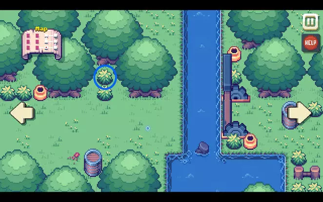 跟随指引!(可能错过) 在翠绿景观中找到躲藏的松鼠。 在按钮谜题期间,当屏幕底部出现攻略广告时,会显示一张翠绿景观河流场景的截图,并提示点击某个特别的灌木丛5次。当你到达吊桥上与黑暗领主的守卫决斗的河流处时,点击下方截图中指示的灌木丛至少五次。