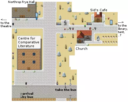 比较文学中心:阿芙罗狄(Aphrod)与罗塞尔(Rossle)的办公室,用于处理工作的电脑 诺思罗普·弗莱楼:委员会成员,论文导师,学生家长及其孩子的房间,各类自习室,设有演讲厅的地下室…… 市中心