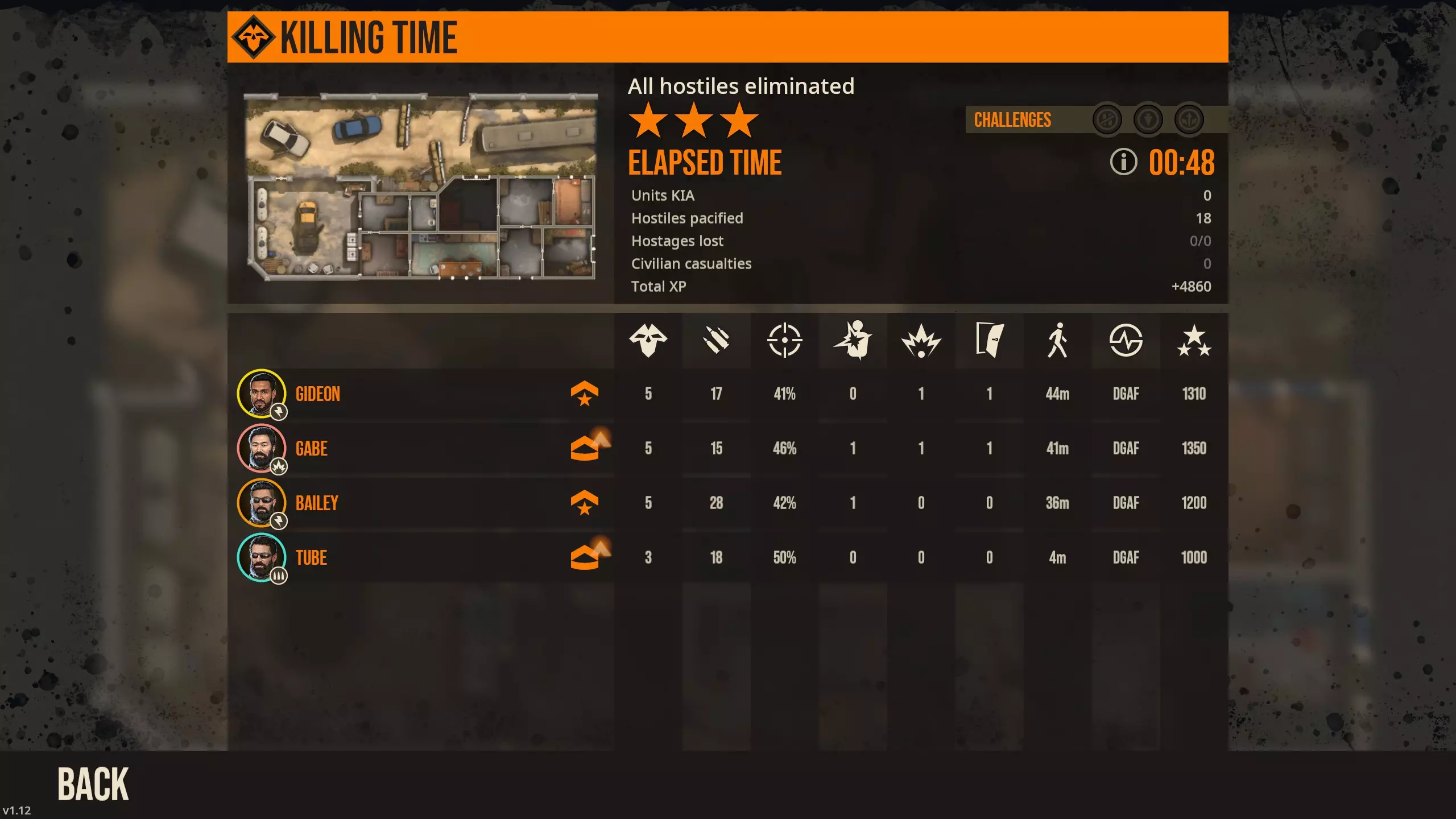 这是来自任务组【LEAD THE WAY】的【Tuff Nut Crackers】。地图中右部分的沙袋和汽车周围有许多敌人,当你将队员移动到北部建筑时,你必须对付左上角桶后面的敌人,以及从建筑内部和建筑最左侧外部出现的更多敌人,更不用说从南部建筑增援的敌人——这里会有多次在近距离战斗范围外与敌人交战的机会。 游骑兵步枪通常在大约15米到45米的距离会切换为卡宾枪瞄准射击模式,具体取决于步枪型号,但你还必须考虑精度——武器精度太差,你实际上会开始射失目标。我个人认为Mk18卡宾枪(Mk18)在大约15米的距离上才能达到最低精度要求,因为我曾见过它在更远距离射击时完全打偏目标。 游骑兵卡宾枪精确射击(Rangers_CarbineAimedFire)的参数如下: 最小瞄准时间="600",最大瞄准时间="900",每秒射速覆盖="2",最小射击数="1",最大射击数="2",重置时间="200",精度修正="-120",后续射击精度修正="10",暴击率修正="10" 简单来说,士兵每秒射击两次,攻击模式为每次齐射发射1或2发子弹(这意味着士兵在切换到下一个目标前可能会意外多射一发子弹),同时带有大幅精度惩罚——但如果士兵未能击杀目标,下一发子弹的精度会略有提升。或者你可以利用任何可能的掩护来架设轻机枪或精确射手步枪等武器,以获得加成。之前的部分简要提及了神射手的【精准射击】和【架枪精准射击】攻击类型,接下来让我展示一款典型的轻机枪进行对比,即M249 SPW: <攻击类型 名称="游骑兵_轻机枪短扫射" 掩体覆盖替代="游骑兵_轻机枪短扫射架枪" 射程米数="3"/> <攻击类型 名称="游骑兵_轻机枪扫射" 掩体覆盖替代="游骑兵_轻机枪扫射架枪" 射程米数="7"/> <攻击类型 名称="游骑兵_轻机枪中距离扫射" 掩体覆盖替代="游骑兵_轻机枪中距离扫射架枪" 射程米数="15"/> <攻击类型 名称="游骑兵_轻机枪远距离扫射" 掩体覆盖替代="游骑兵_轻机枪远距离扫射架枪" 射程米数="40"/> <攻击类型 名称="游骑兵_轻机枪超远距离扫射" 掩体覆盖替代="游骑兵_轻机枪超远距离扫射架枪" 射程米数="9999"/> 如你所见,对于每个射程增量,都有一种架枪状态不同型号的武器存在差异。在近距离时,即便是架设状态的轻机枪,其瞄准时间也比站立步枪要慢(M16A4的开火准备时间为350毫秒,而M249轻机枪在未架设时为450毫秒,架设后则为400毫秒)。不过总的来说,将轻机枪架设在掩体或其他地方进行射击,能使其射速更快,并且每次齐射的子弹数量也更多(精确射手步枪则会获得瞄准时间、重置时间以及暴击率的加成)。 因此,我的建议是,只有当支援兵能够找到合适的掩体进行射击时,才部署他们。有三个值得注意的例外情况:霰弹枪在近距离战斗中用于补充火力/获取经验值。让他们切换到副武器,直到到达所述掩护位置,然后可以换回轻机枪,例如,如果建筑物内有某个位置,而你不想进行微操作,下一点:手动选择压制火力会使他们在250毫秒后向你指定的任何扇形区域射击——他们的准确性明显低于单纯试图击杀敌人时,但如果你需要让他们用轻机枪立即向“那里”的目标射击,这会让他们开火。狙击手与上述情况类似,但在大约20米以外(具体取决于瞄准镜加成,我现在不想查看)比其他步枪手的接战速度更快。因此可以大致得出结论,在游骑兵:使用7米范围内的近距离战斗单位,例如清理建筑物。中场单位在5米至20米范围内较为有用。精确射手步枪在超过15米后开始发挥作用,并且在该距离外能可靠地攻击敌人。轻机枪在无支援时较为迟缓,但你可以手动命令它们射出压制火力锥,而且你绝对应该尝试将你的精确射手步枪和轻机枪移动到掩蔽处,以便它们能从架枪攻击类型中获益。 游骑兵——支援单位,或者当你真的只需要更多火力时使用。 我本想总结每个职业的角色,但后来我注意到其中一款新轻机枪在不在掩蔽处时也能获得架枪状态。那应该是LAMG,但让我快速从概念上介绍一下轻机枪。 轻机枪和精确射手步枪一样,从进入架枪状态中获益。在游骑兵-车载武器与远程战斗部分,我简要介绍了M249 SPW及其攻击类型。作为参考,M240L轻机枪在未架设状态下使用带有通用机枪前缀的攻击类型: <AttackType name="游骑兵_通用机枪短点射" inCoverOverride="游骑兵_轻机枪短点射架设状态" rangeMeters="3"/> <AttackType name="游骑兵_通用机枪扫射" inCoverOverride="游骑兵_轻机枪扫射架设状态" rangeMeters="7"/> <AttackType name="游骑兵_通用机枪中距离扫射" inCoverOverride="游骑兵_轻机枪中距离扫射架设状态" rangeMeters="25"/> <AttackType name="游骑兵_通用机枪远距离扫射" inCoverOverride="游骑兵_轻机枪远距离扫射架设状态" rangeMeters="60"/> <AttackType name="游骑兵_通用机枪超远距离扫射" inCoverOverride="游骑兵_轻机枪超远距离扫射架设状态" rangeMeters="9999"/> 通用机枪扫射类攻击类型普遍接战速度较慢,且每轮齐射发射的子弹数量较少。如果武器处于掩护状态,这一情况并不普遍适用,因为突击队员的所有轻机枪都只有轻机枪扫射架枪(LMGStrafeMounted)变体,所以此时重要的是射速、伤害(理论上弹匣容量也很重要)。 M249、Mk48和XM250使用轻机枪扫射(LMGStrafe)攻击类型,而M240L和XM338使用通用机枪扫射(GPMGStrafe)攻击类型。 LAMG在未架枪时使用一些轻机枪扫射架枪(LMGStrafeMounted)攻击类型,在14米范围内模拟架枪轻机枪的效果,使其成为支援职业出色的中距离选择,因为它在该距离的交战速度大致与中距离步枪(例如突