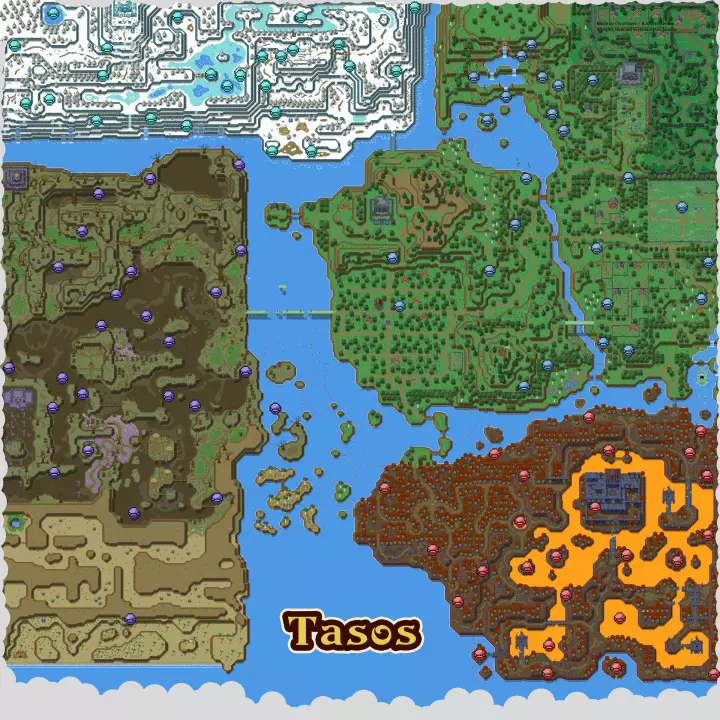 我花了些时间为朋友们制作了一张地图,方便大家寻找所有的球体、稀有石头和法术。我尝试制作一张清晰美观的地图,为此进行了大量的像素处理,这就是最终成果。 大多数标记都经过了双重检查,但可能存在一两个位置错误。如果发现任何错误,请告诉我。 希望大家喜欢!祝大家在寻找所有遗漏物品的过程中玩得开心! 世界地图 这是包含以下内容的完整地图: 石头、德鲁伊石、能量球、瓶子、书籍