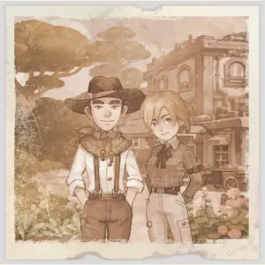 啊…… 这张照片是在……不久前拍的。 梅森在绿洲旁边建了那个水塔……你看他在照片里多累啊。肯定费了不少劲……那时候大家都挺泄气的,还好玛蒂尔达和米格尔来了,给大家带来了一点希望。 他们不仅鼓舞了我们,还支持那些促进自然和水资源保护的项目……他们总说的那句话是什么来着?不管怎么说,他们确保了我们总有足够的水喝。 但沙漠还在不断扩大,很快一切都会干涸,不过我可能活不到那时候了。人们又开始离开沙石镇了……只有我这样的老顽固还固执地留在这里…… 年轻人,谢谢你把这个带给我。能和愿意倾听的人分享这些往事感觉真好……如果你找到更多我的照片,记得过来坐坐。 故事 ~ 莫特与玛蒂尔在沙石镇旅馆
