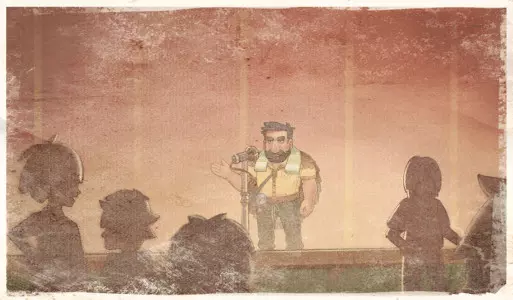 孩子,又见面了——嗯?你找到的那东西,是我以前的老照片,对吧?真没想到!我的老照片竟然还散落在某个地方!能把它给我吗? 啊哈!这张照片是在小齐克刚到沙石镇的时候拍的。那时他还是个小不点,谁能想到他后来会长这么高呢? 我们是在沙漠里发现他的,当时我们去尤弗拉北部地区搭建草方格,他和他的族人走散了。我们本来打算帮他找到亲人,但沙漠却另有安排…… 于是,我和玛莎就把他当成自己的孩子抚养。教他这片土地的生存之道。我的妻子……她为他感到非常骄傲。我想,对她来说,他甚至比绿洲还要珍贵。 这是一段珍贵的回忆,谢谢你找到了它,年轻的建造师。我想……既然外面可能还有更多我的照片,如果你碰巧发现了,能不能带给我?那样的话,无论生死,我都会是一只快乐的苍蝇。 故事 ~ 沙石镇的“淘金热”时代