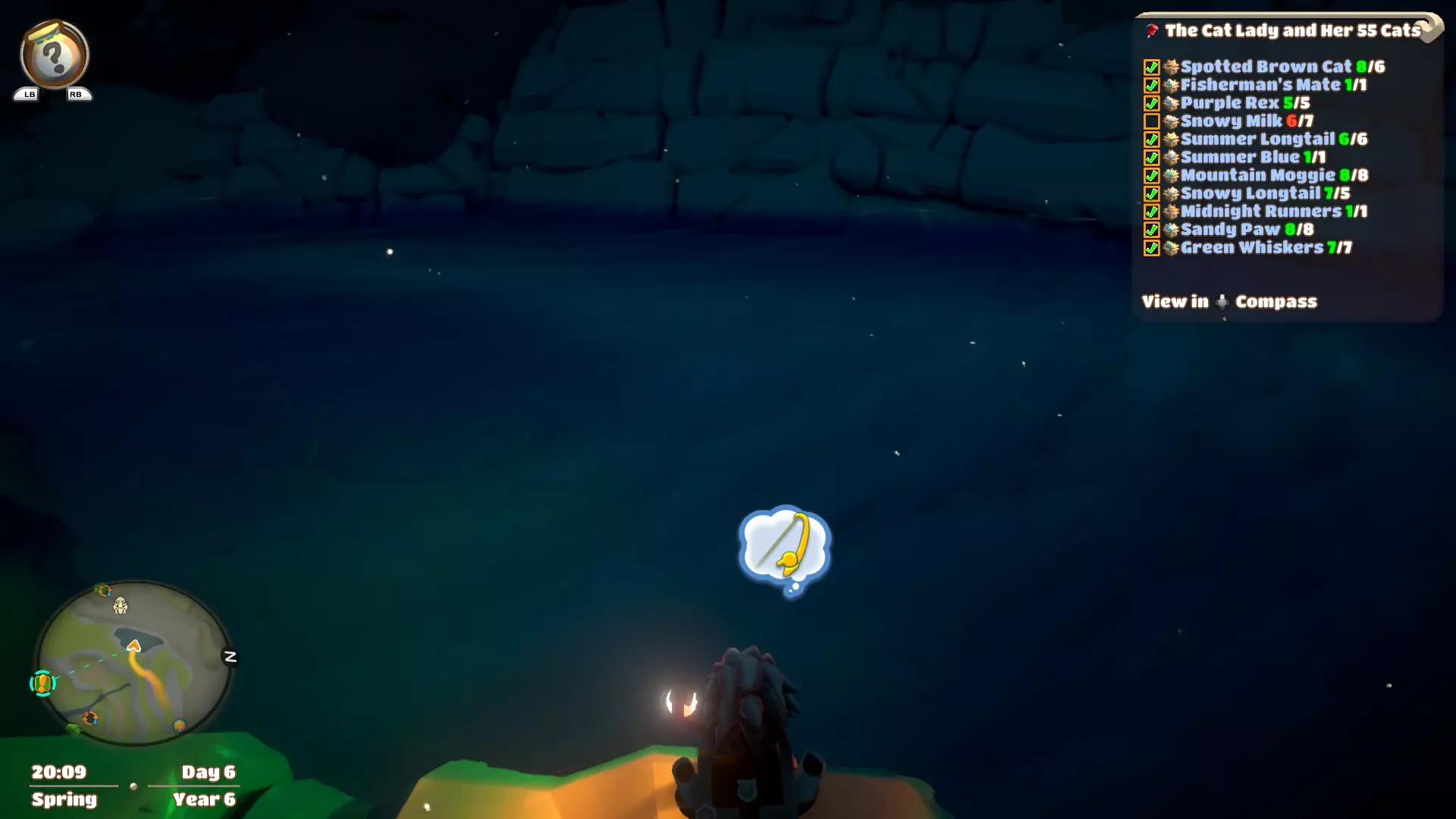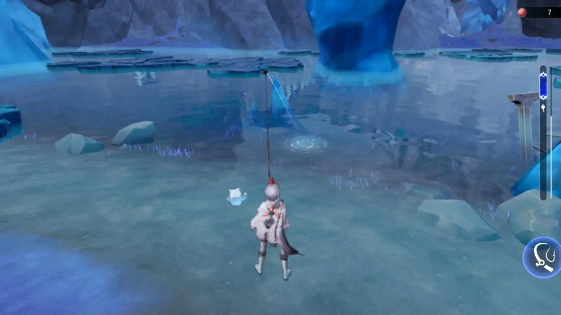 吉伽莱夫鱼或许不是最难找到的鱼,但绝对是最难上钩的。它仅能在以下区域的海域中被发现:光辉沙滩、寒颤平原、 hearthwind谷和 crestfall海岸。这种鱼体型巨大,身体会占据半个钓鱼点,因此当它出现时很容易被注意到。它体型庞大到会遮挡周围游动的所有其他鱼类,也会因此隐藏那些对你的鱼饵感兴趣的鱼,这使得避开它们变得困难。要让这种鱼对鱼饵产生兴趣确实非常困难,可能需要很长时间,实际上当它最终对你的鱼饵产生兴趣时,其他所有的鱼很可能也对鱼饵感兴趣了。但即便你用诱饵吸引到了它,真要让它上钩也实在是太难了,这更多靠运气而非技巧。速度慢得很,其他感兴趣的鱼很容易就游到诱饵旁边,要是你干等着它们咬钩,大概率会被别的鱼捷足先登。我大概每5次出现才能钓到1条,可能还更少。就算周围游着两条以上,你还是很难把它们钓上来。就像你在屏幕上看到的,这是我唯一还没拿到五星的鱼,尽管我已经钓了10多条了,但到目前为止运气就是不好。说实话,原本我想等所有鱼类都达到5星后再写这份指南,但在这条鱼上浪费了好几个小时后,我感到有些厌烦。不过我还是会尝试让它达到5星,只是这可能需要一点时间。 钓鱼地点 阴阳鱼位置