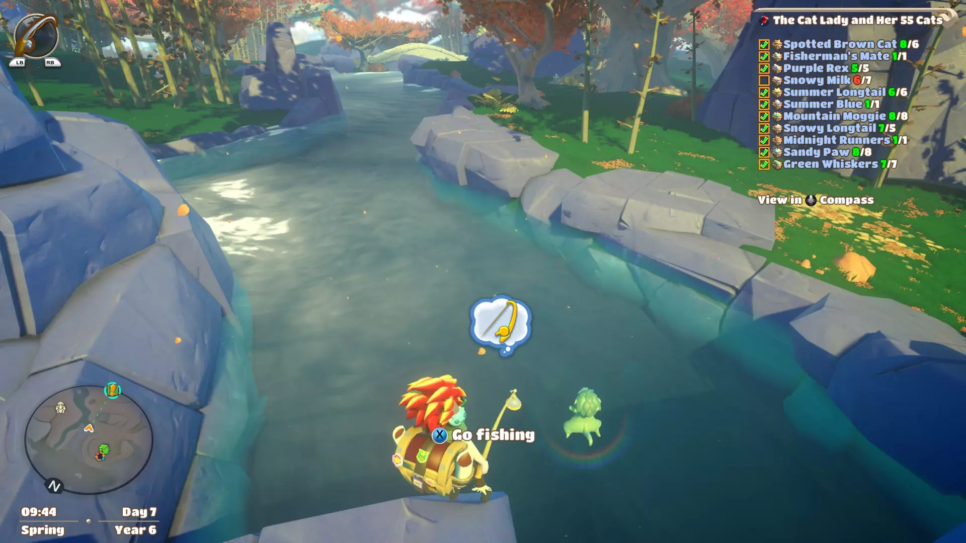 可捕获鱼类: - 浸鱼 - 老旧湿靴子 - 蕾丝鱼 - 幽灵鱼 - 公主鱼 - 国王鱼 - 闪电鱼 - 阴鱼 - 阳鱼 这条河通常是捕获阴鱼和阳鱼的绝佳地点,因此你可以在这里钓到大多数淡水鱼。说实话,我从未在钓鱼比赛的那条河里钓过鱼,但由于它是这条河的下游,实际上可能有相同的鱼类。 女王鱼位置