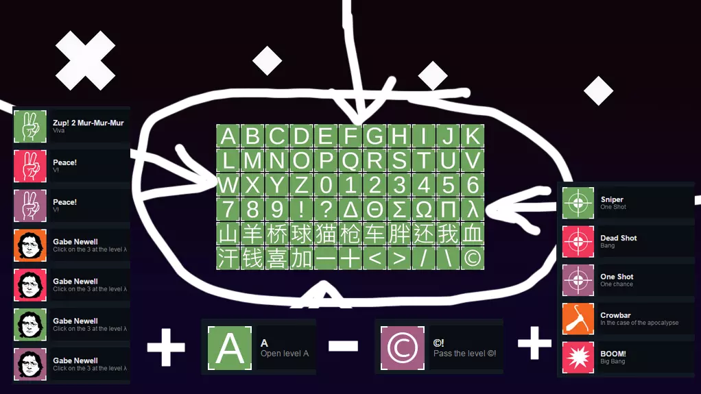 1.《Zup!》以及《Zup! 2》-点击ZUP记录 2.X mark-点击主菜单中的叉号 3.选择关卡(可直接获得3个成就)-点击底部的3条线 4.《Zup! 2》Mur-Mur-Mur(可直接获得3个成就)-点击感叹号中的2 5.《Zup bro!》-启动游戏即可直接获得 就是这些
