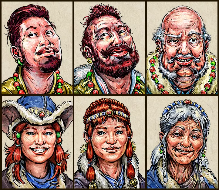 英雄亚塔坎和艾夫图在该仪式中同样拥有额外优势。(即使亚塔坎崇拜的是扎伦而非埃尔马尔,这一优势依然适用。) 由于埃尔马尔赐予了他们火焰祝福,他们非常适合追寻埃尔马尔的足迹。而且两人(尤其是亚塔坎)年轻时就是强大的战士,是提升战力的优秀战团领袖候选人。他们的火焰魔法也赋予他们(尤其是艾夫图)在大多数探索者无法完成的选项上的优势。 然而,这并不意味着他们一定能成功。你可能需要等待他们的战斗能力至少达到卓越级别后再派遣他们进行该仪式——冒险派遣他们可能会浪费他们的巨大潜力。 此外,请记住,根据你的选择,艾夫图可能会与氏族外的人结婚。如果你打算这样安排她,就不要用仪式来强化她。 尽管你的第三位英雄贝伦信奉埃尔马尔,但他并不具备火焰英雄所拥有的那些特殊优势。不过,他的技能往往仍使他成为仪式的合适人选,而且他的英雄特质也能像火焰英雄那样,让他在战斗中占据优势。 阶段1a:问候小耶尔姆