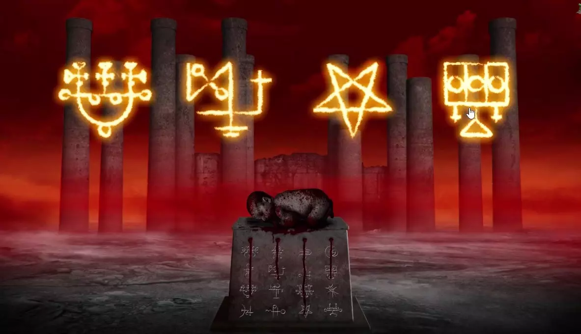 第九关 点击雕像 点击地面(圆形)×2 点击祭品的脖子 点击戴斗篷的人影 点击地面(圆形) 点击雕像 点击祭品的胸部 点击地面(圆形) 第十关 点击两个被钉在十字架上的人(直到岩浆喷出) 滑动鼠标经过他们的头部到岩浆处 点击两个被钉在十字架上的人(人影跑开,后面的消失) 点击岩浆 第十一关 滑动鼠标直到出现一个绞刑架上的人 点击第一个并移动到标记I处 第二个落下,点击并移动到II处 第三个落下,点击并移动到III处 注意:如果没反应,点击各自对应的数字,即点击第三个3次,然后移动 第十二关 点击刀 点击祭品直到火把点燃 按照祭坛的样式放置火把:
