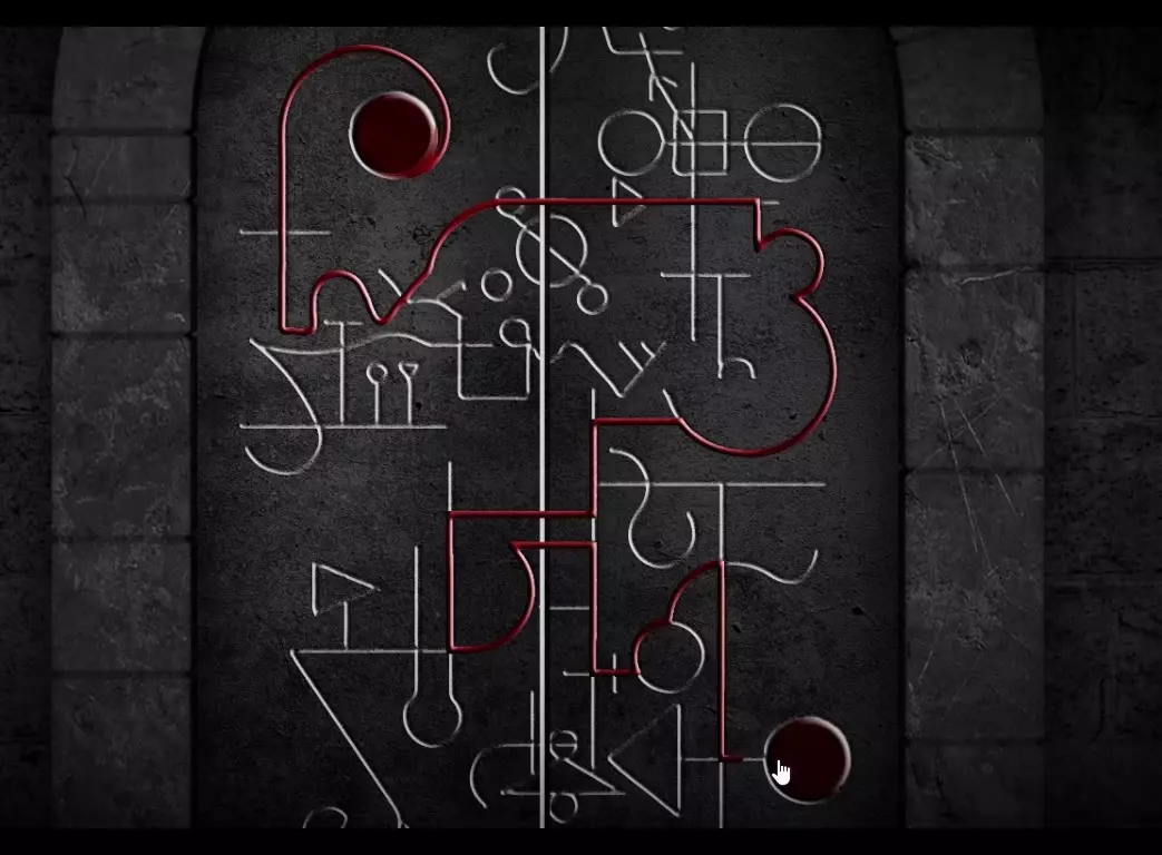 第十三关 点击门,注意灯光 重复步骤 如果我们将其记为 12 34 56 那么你需要点击: - 1 2 5 3 - 3 2 5 6 1 4 2 5 第十四关 按照这个路线,点击并滑动: