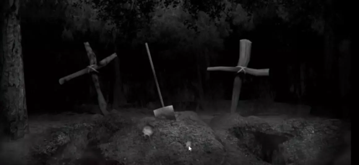 点击右侧坟墓 点击左侧坟墓 点击十字架 第五关 点击尸体 点击树内 点击树内直至点亮灯光3次 点击尸体 点击关闭灯光 点击尝试点亮灯光 第六关 点击坟墓 点击五芒星 滑动鼠标绘制五芒星 第七关 点击高处头骨 点击吊尸 点击黑色背景(蝙蝠) 点击地面头骨(滚动掉落) 点击尸体 点击滚动的头骨 将鼠标从滚动的头骨滑向尸体 点击尸体 点击背景 第八关 只留下这4盏灯点亮: