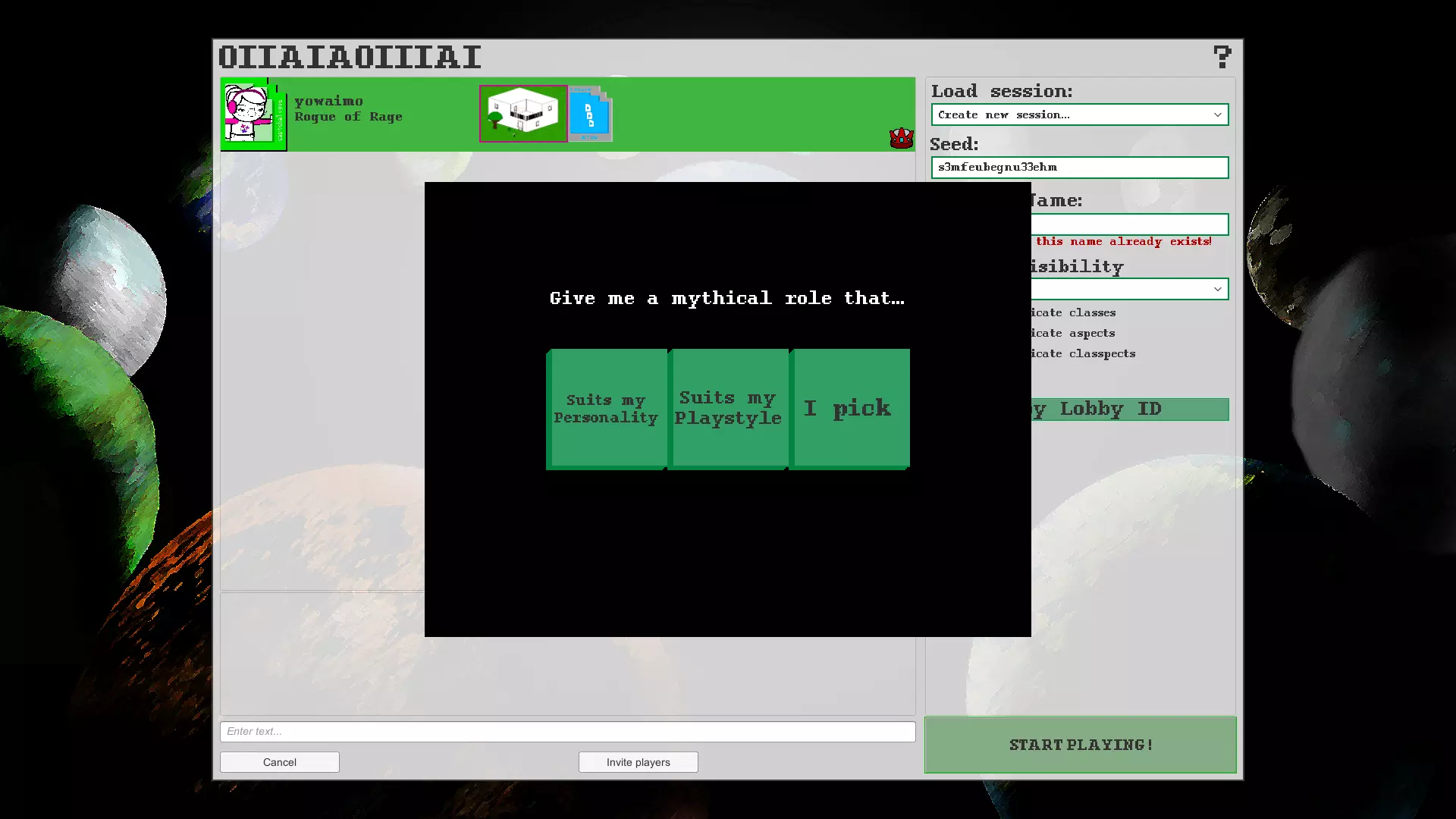 1.2.2. 职业体系 在菜单中点击您的职业(随机分配),您可以看到选择职业的方式:根据您的游戏风格、您的性格或自行选择。