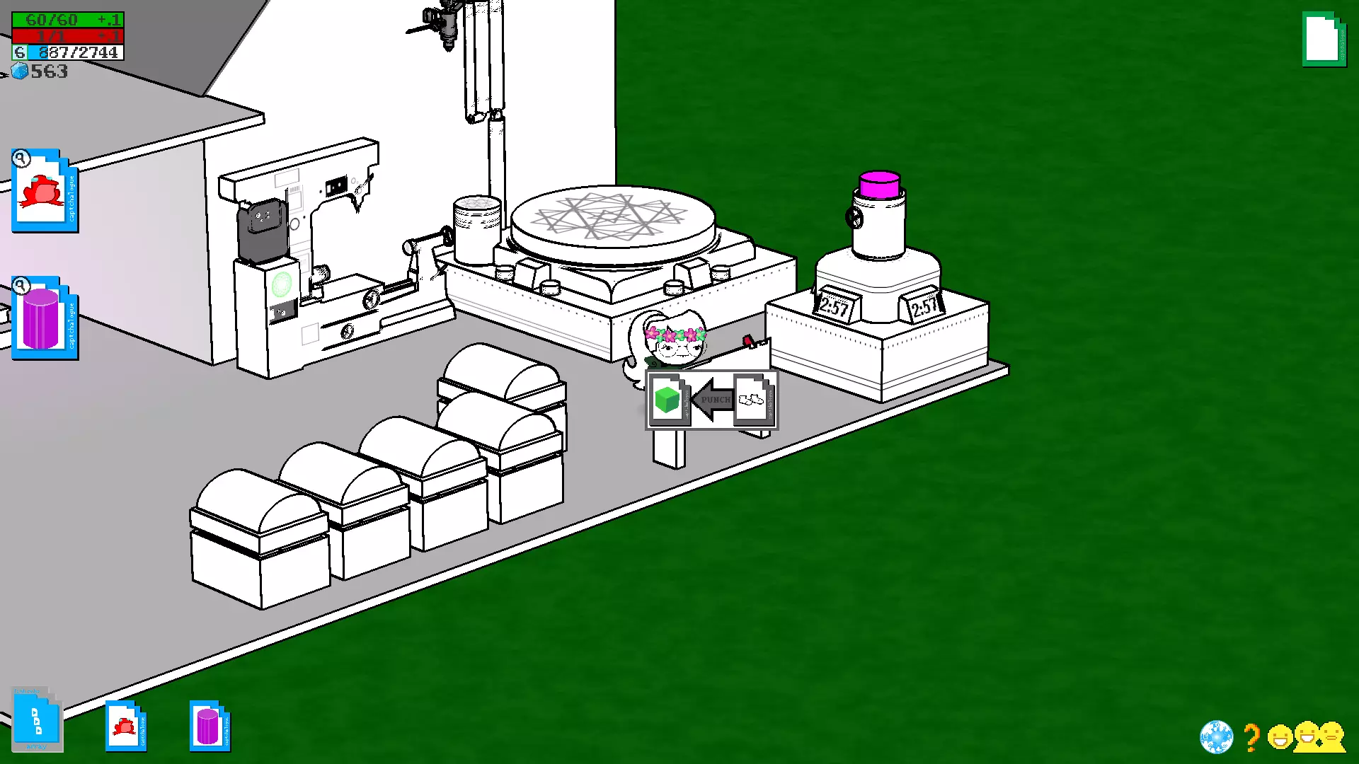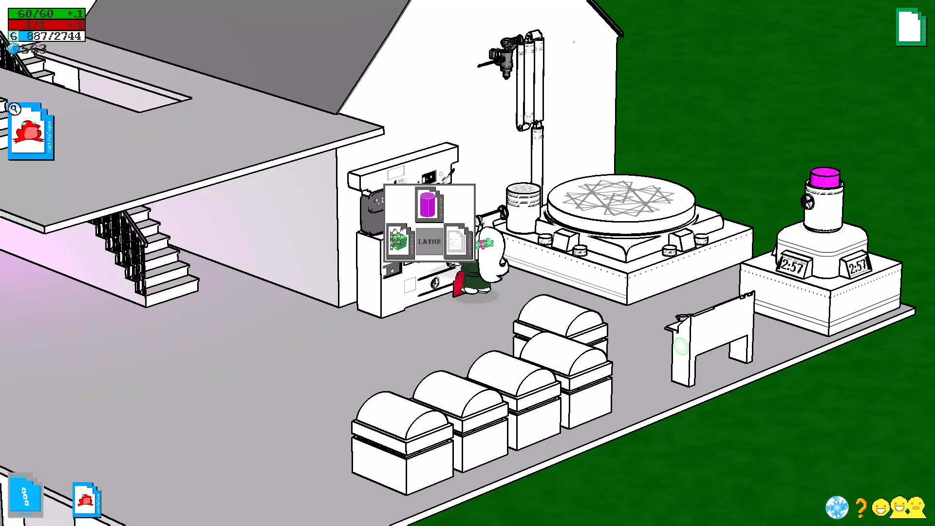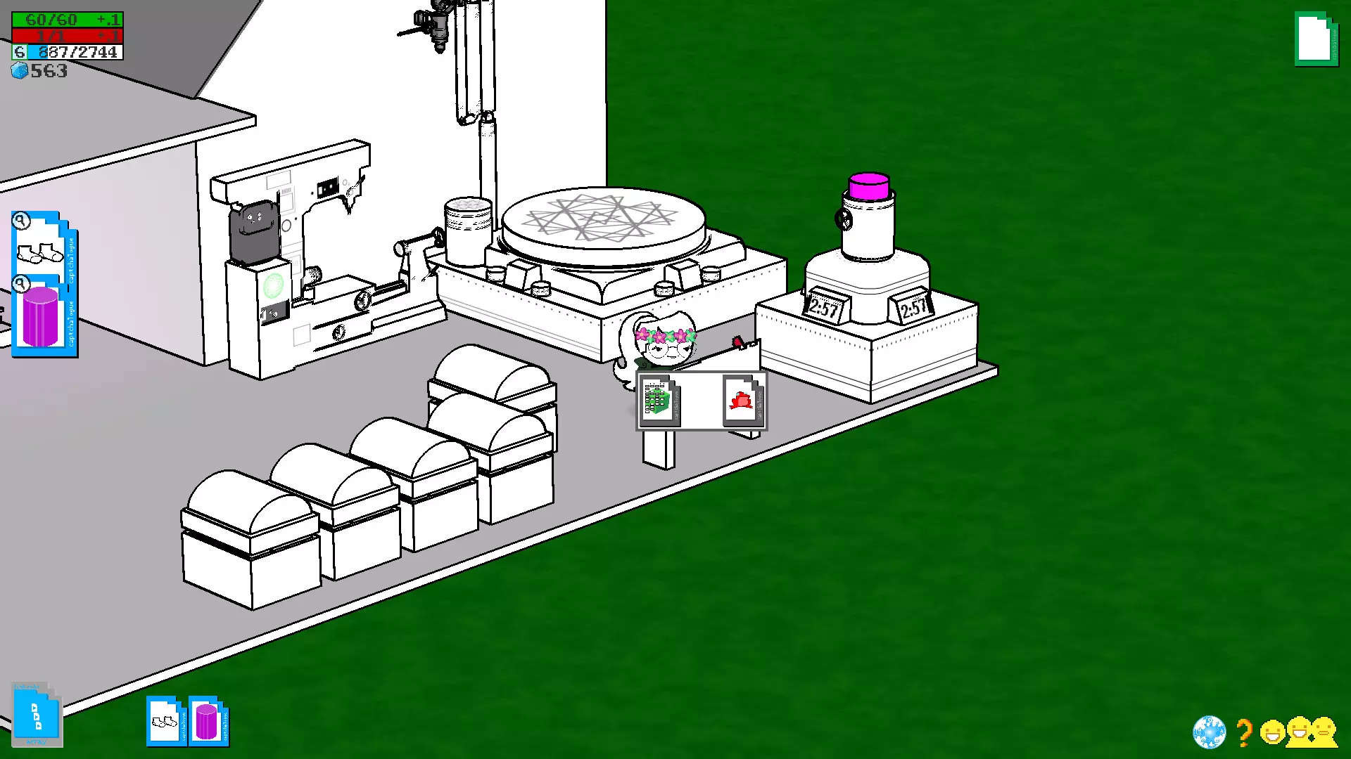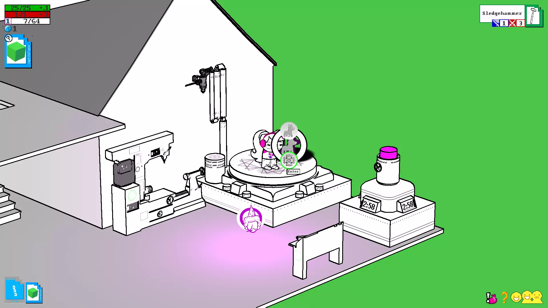 获得期待已久的磁盘后,前往房间,将磁盘插入电脑并进入建造模式。如果和朋友一起玩,那么你将担任服务器玩家的角色,而朋友则是客户端玩家,在建造模式中你将能看到朋友及其房屋(朋友也会有磁盘,并且会成为你的服务器)。单人游戏时,你自己既是服务器又是客户端,因此将在自己的房子里建造。建造 在详细说明如何使用这个家庭模拟器之前,以下是菜单说明: