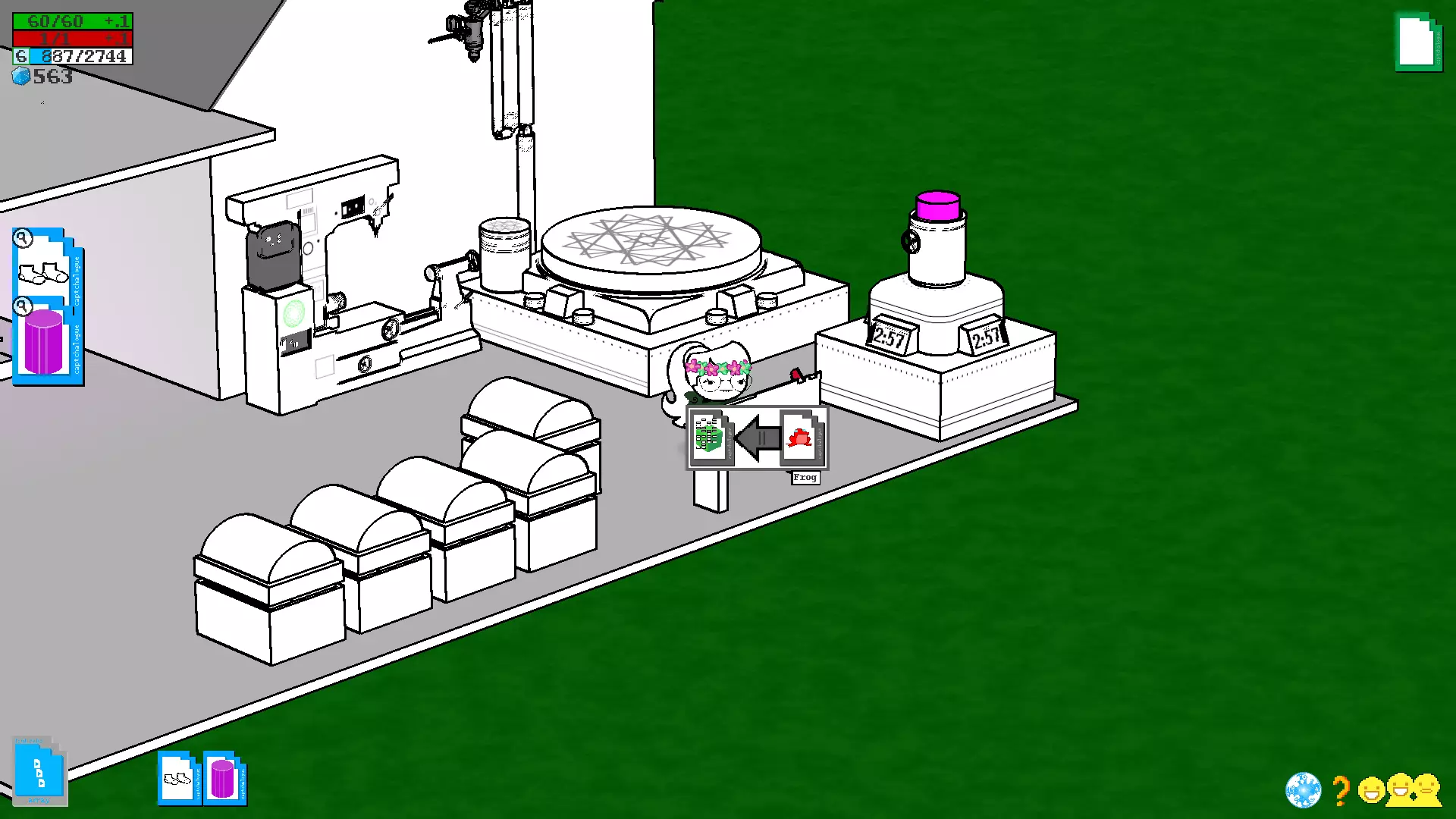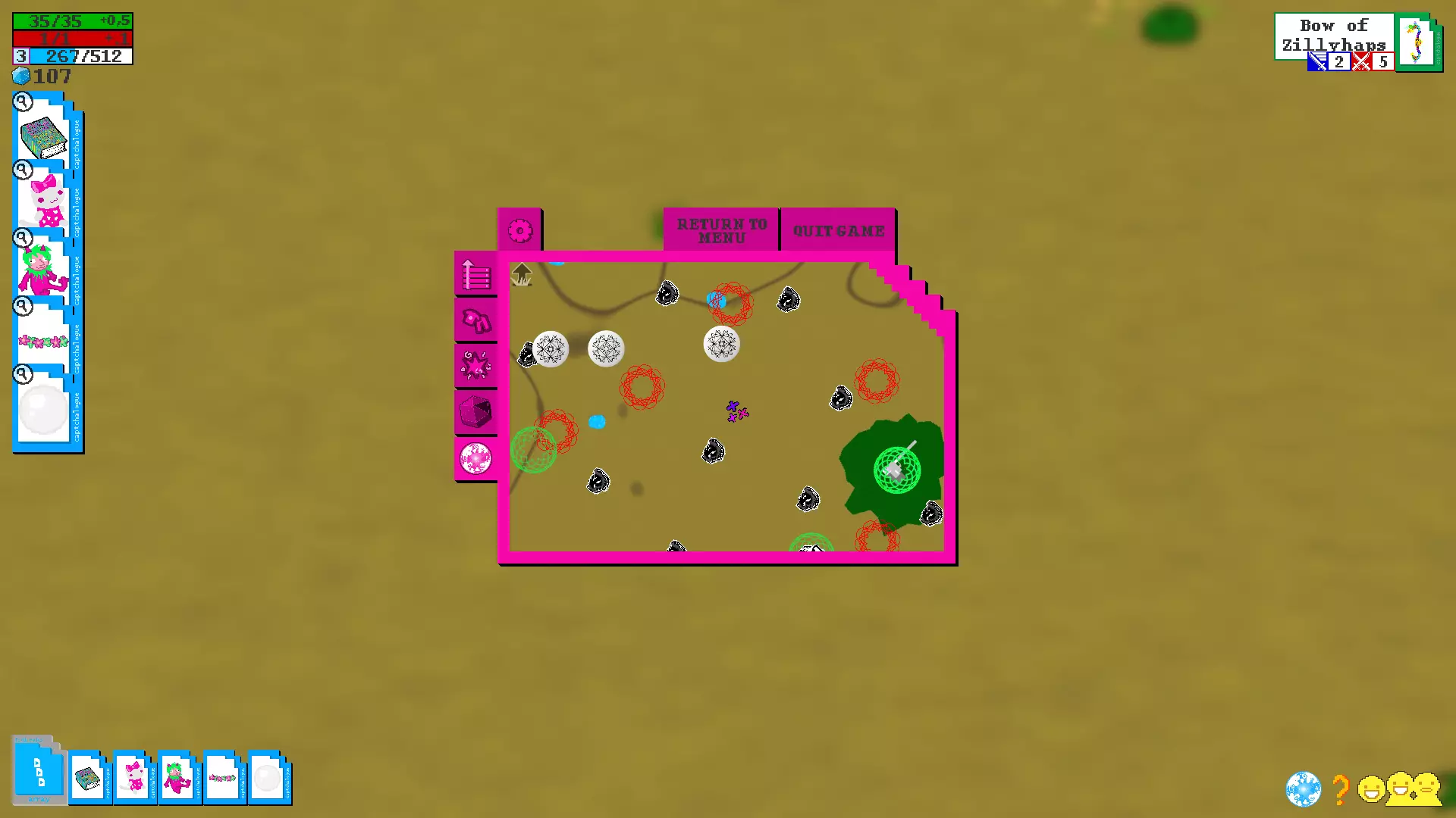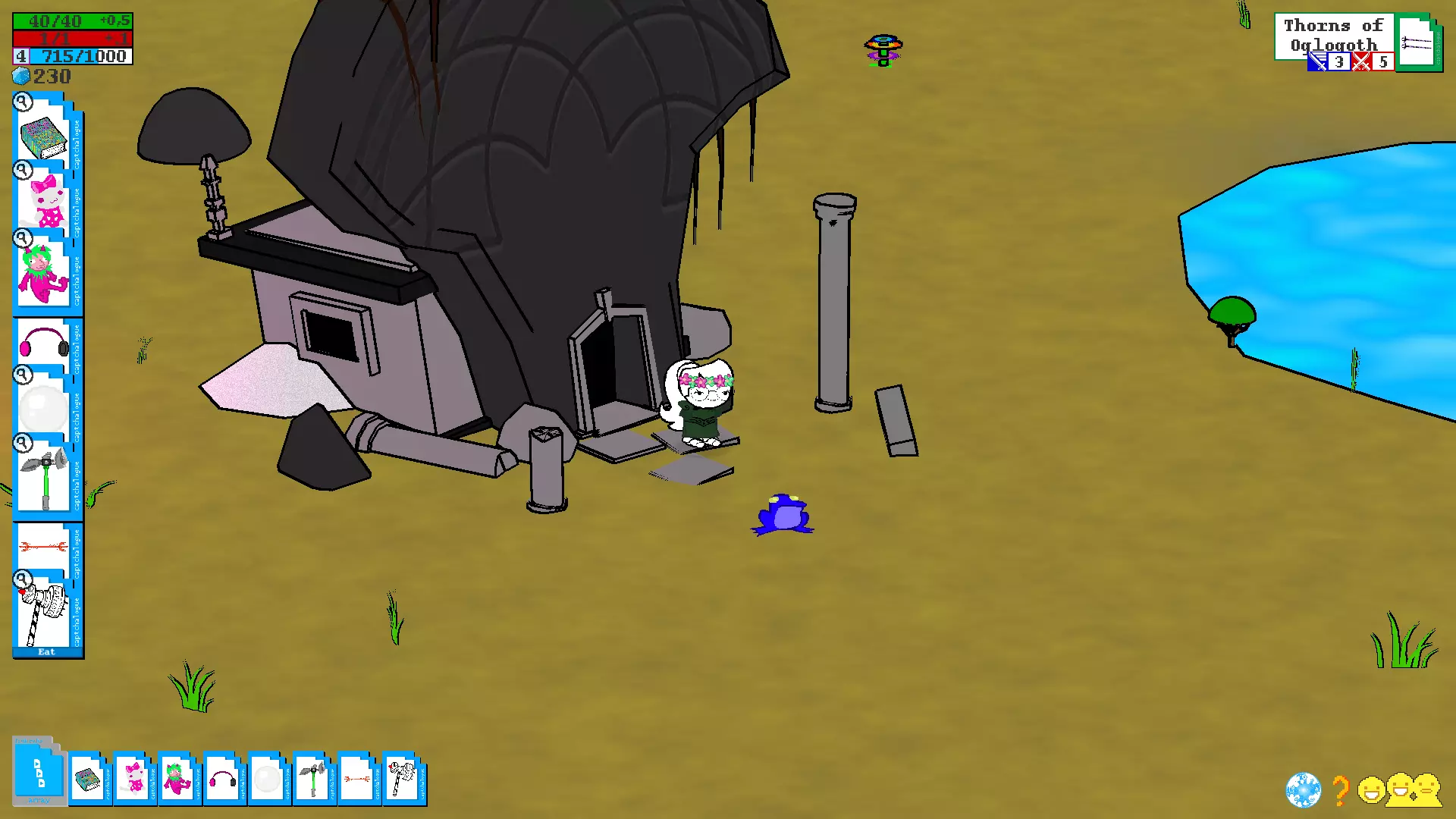 (看看我现在的酷炫靴子) 制作新物品不仅能帮助你提升防御等级,还能改善武器的属性(不过,属性越好,制作该武器的成本就越高……) 4.3. 奇妙标签及其出处 每个物品都有自己的标签,而标签本身又包含特定的属性,具体取决于该物品是武器还是装备。此外,当你创建带有特定标签的物品时,系统会要求你提供具体的材料清单。在第7部分中,你可以看到一个表格,其中列出了哪些物品具有标签以及如何组合这些标签。4^2 核心精灵和原型物品 基础原型物品 精灵 使用物品 对敌人效果 鱿鱼精灵 鱿鱼毛绒玩具、午餐盒、魔法书、海报 脸上的触手、可爱的眼睛 萨萨克精灵 萨萨克 假胡子/眼镜、法师帽 侦探精灵 《问题侦探》海报或“帽子”牌帽子 时尚的外套和帽子 骑士精灵 骑士头盔或盔甲 盔甲(仅对骑士有效) 猫精灵 死猫(白色或黑色) 耳朵、尾巴、猫脸 兔子精灵 空中监狱兔子(毛绒玩具)、兔子比尼帽,邦斯拉默(武器),史莱哲希尔(武器),黄金兔子,兔子耳朵 鸟精灵 死鸟(白色或黑色)翅膀,喙 卡尔精灵 小卡尔 小卡尔的形象——脸,衣服,手套 史莱姆精灵 绿色史莱姆 幽灵弹簧单高跷,海报 史莱姆的脸,弹簧腿(可能无法使用) 飞蛾精灵 灯/熔岩灯 飞蛾的翅膀和外观 达顿精灵 查尔斯·达顿的照片或达顿的诗集 达顿的脸 狗精灵 动物标本狗 耳朵,尾巴,狗脸 公主精灵 大型公主玩偶 公主的粉色连衣裙 小丑精灵 小丑玩偶小丑服装,无损坏 清晰精灵 可通过/item命令添加到自己物品栏的对抗类物品。物品代码 图标 备注 prot7-UP Dio/7up 可能存在故障 protARDA Aradia 无对话 protCAGE Nic Cage 就是尼古拉斯·凯奇 protEQU Equius protERD Eridan protFFRI Feferi protHJEF Hella Jeff protJOJO Star Platinum protKNYA Kanaya protKRKT Karkat protLADR 梯子 嗯,就是个梯子 protLINK CDI Link protNPT Nepeta protSBRO Sweet Bro 无图标,但可使用 protSLLX Sollux protTRZI Terezi 带有龙元素,存在故障 protTVRS Tavros protVSKA Vriska protWGUY Wise Guy大门 要进入您的领地,您需要到达位于您家稍上方的大门。为此,我们需要再次玩“模拟人生”类游戏,并收集大量的装备才能到达那里。 这可以通过多种不同的方式实现,具体取决于您觉得哪种方式方便以及在当前阶段您拥有多少材料,但有个好消息!进入灵界后,你无需直接删除家中所有家具,你可以在家中击杀几只怪物,这样就能获得一些建材(另外,如果你建造的扩建部分足够宽敞,这种方式会为怪物生成提供更多空间。这对你而言是利是弊,由你自己决定)。