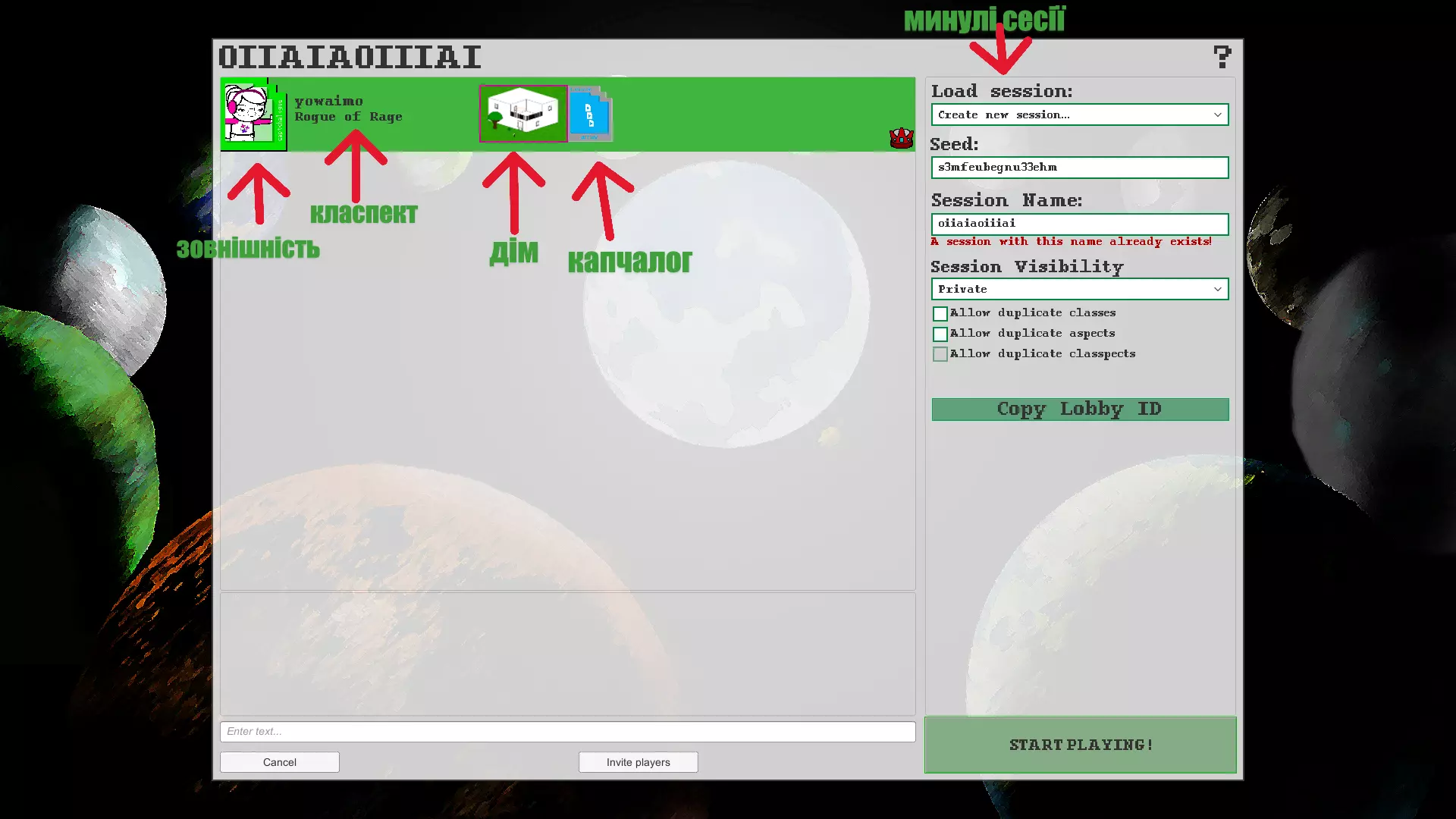 由于游戏仍在开发中,所以仍然存在不少漏洞,而且有些机制有时可能难以理解。那么,这份指南就是为你准备的!它将包含进入媒介、穿越传送门的常规步骤、个人观察,以及对现有部分错误和技巧说明的翻译。其中的信息将随着我的游戏进程以及游戏的其他更新逐步添加。如果有任何意见或补充建议,也可以在评论中提出。 1.菜单 (如果您已经熟悉菜单和操作,可以跳至第3部分) 1.1. 创建大厅 要开始游戏,我们需要创建一个大厅,为其命名,根据需要添加密码,并设置访问模式(我通常会设置为私人模式,如果是单人游玩,或者仅好友模式,但如果您希望任何人都能加入并一起游玩,可以开启公开访问)。