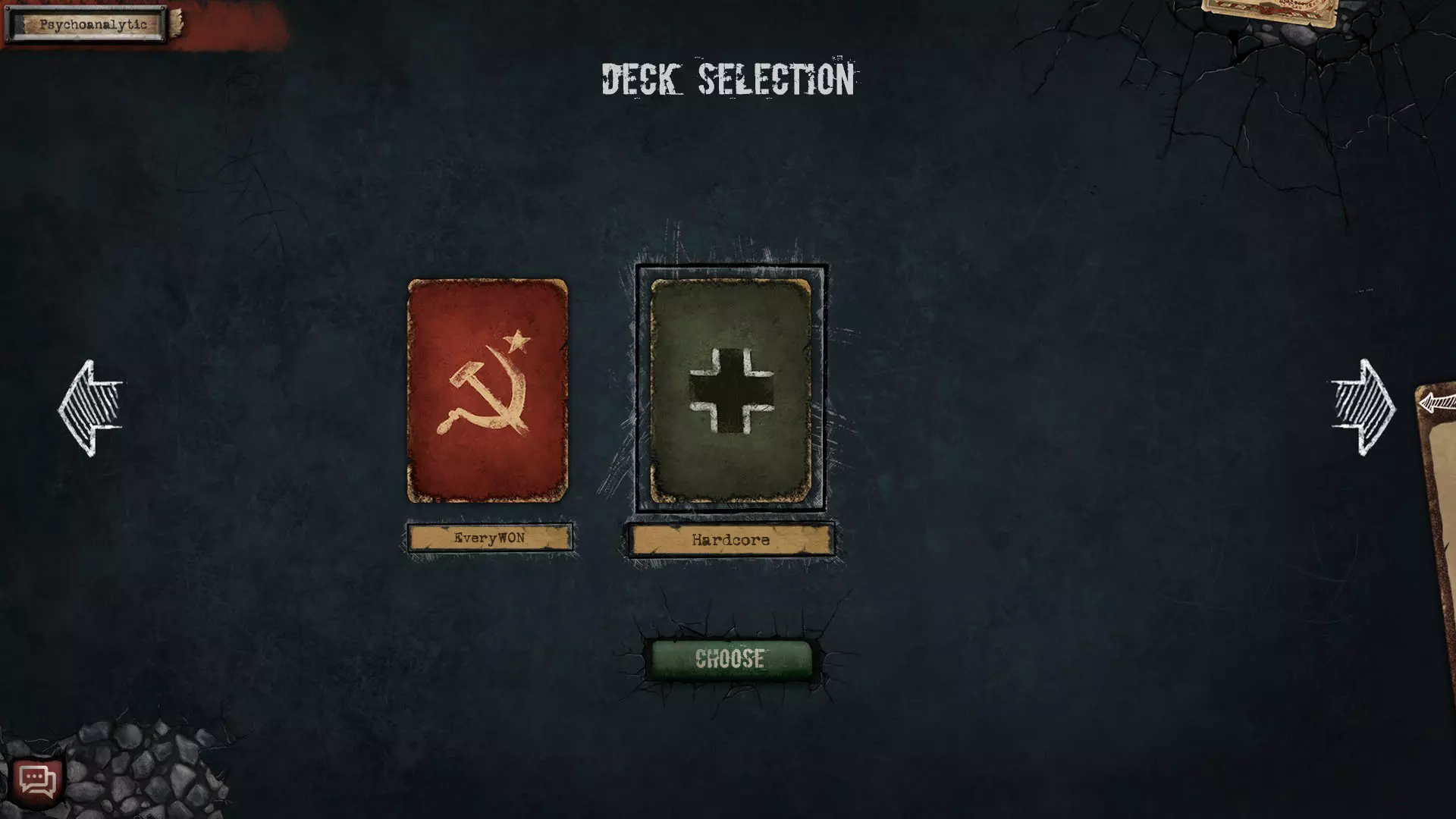 你的手牌中有5张卡牌。游戏开始时,玩家有权一次性更换任意数量的卡牌为其他随机卡牌。 回合开始时会补充手牌。手牌会补充因打出而减少的卡牌数量,即若牌库中有足够卡牌,手牌会补至5张;否则会将牌库剩余的所有卡牌加入手牌。 牌库耗尽不会导致失败。