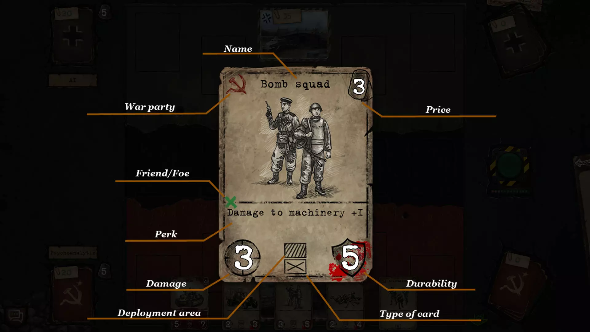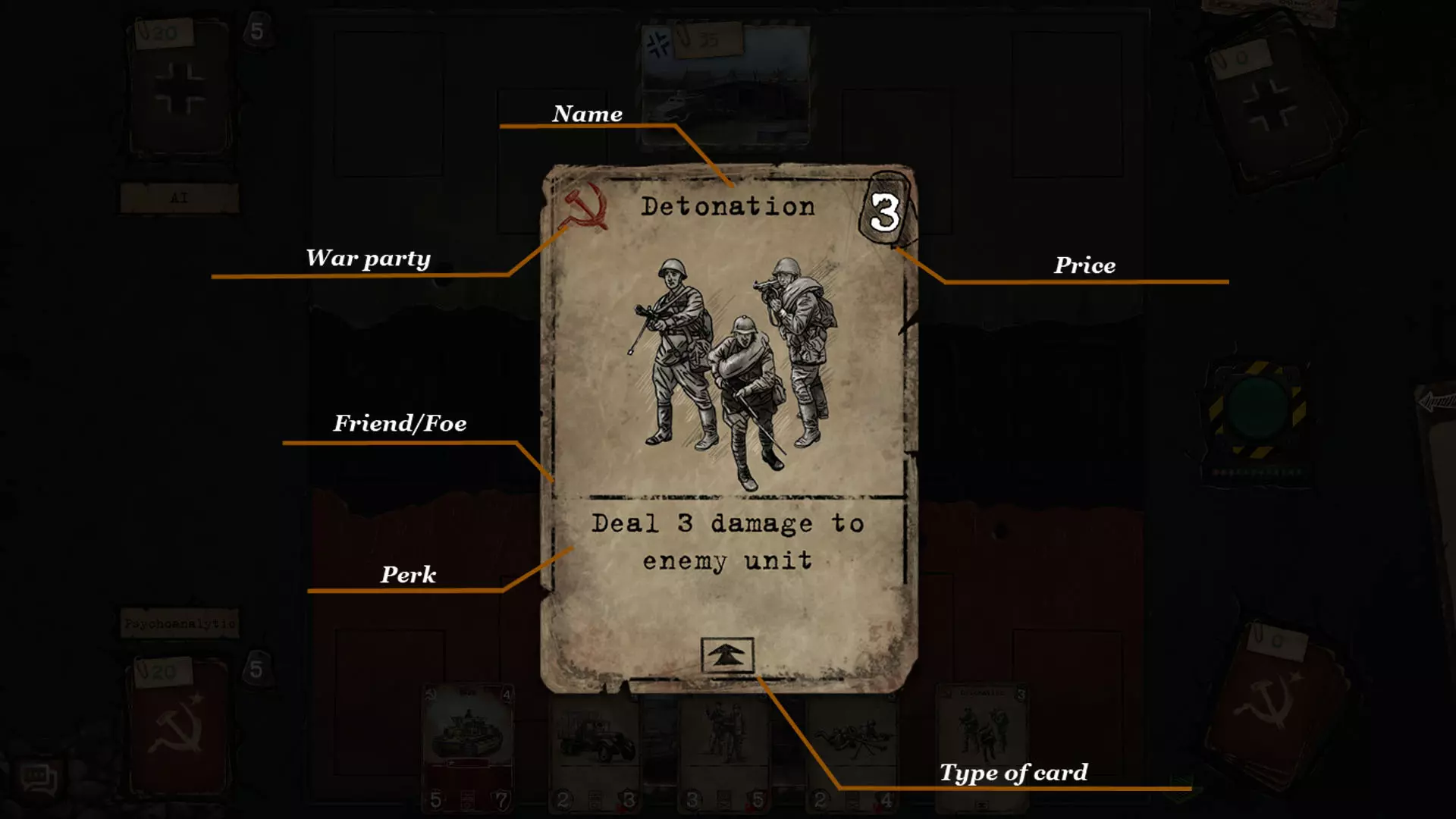 游戏中有三种类型的卡牌:代表单位卡牌的【步兵】或【机械】,以及单独图标的【行动】卡牌。