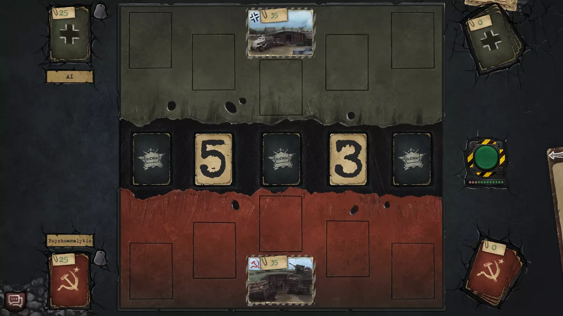 卡牌背面有1到5的数字。选择数字较大的一方先行。