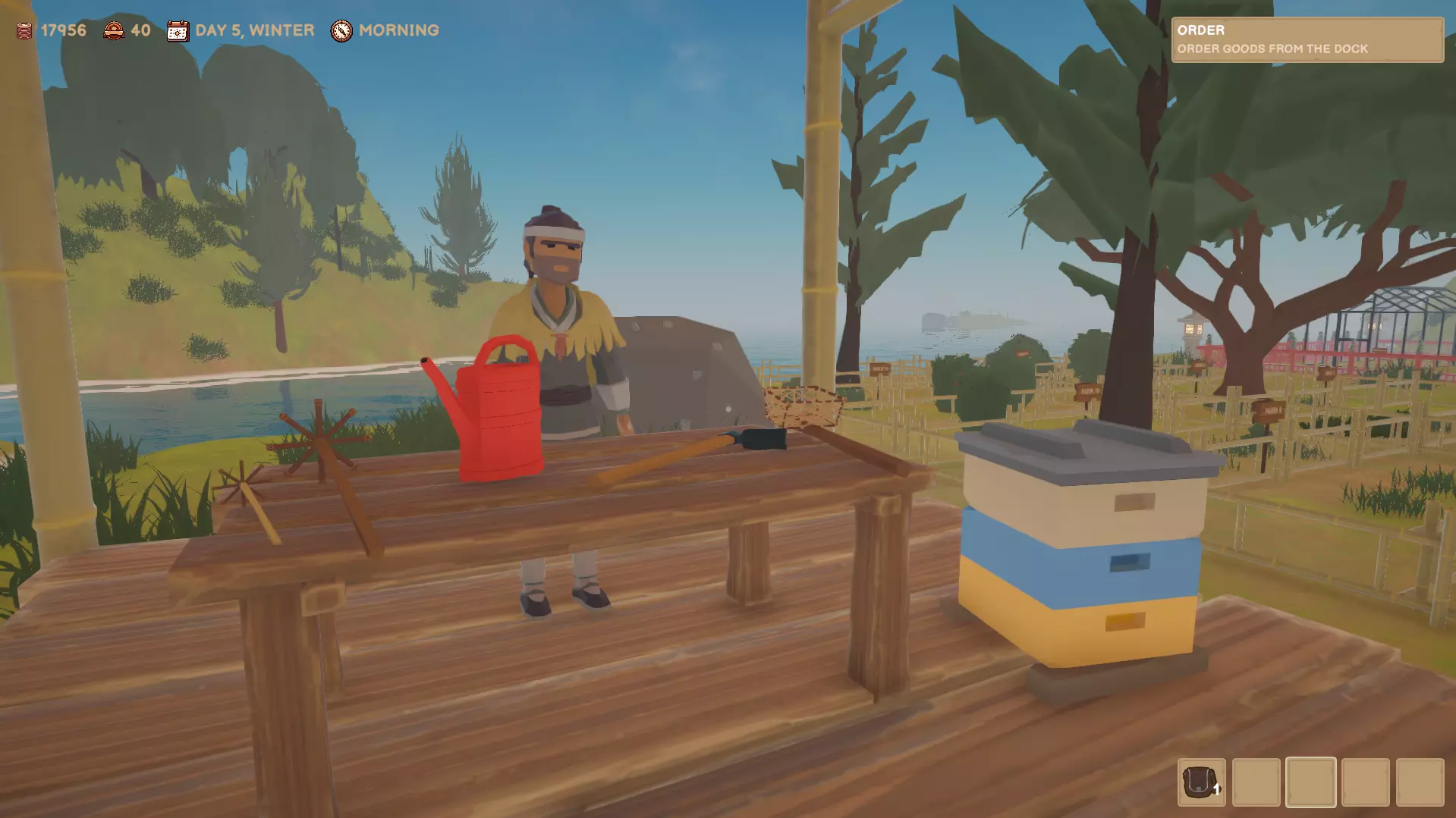 园丁可以卖给你任何你可能需要的园艺工具。你也可以和他交谈,查看他出售的所有种子和树木。农场