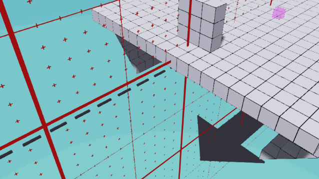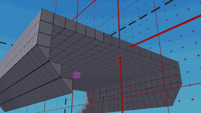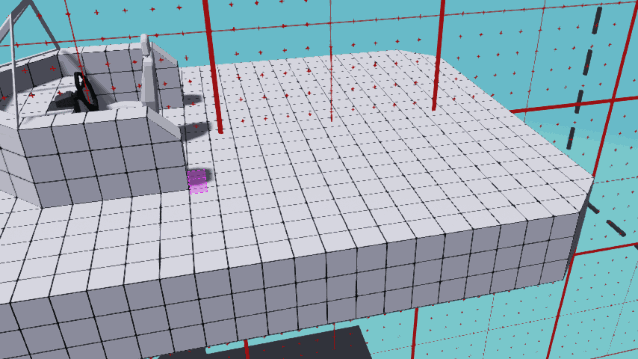 这些GIF展示了两种建造斜坡起点的方法(右侧的GIF经过大幅编辑/加速处理)。之后,你应该可以从楔形块的侧边点击并拖动,一直延伸到船的侧面。 下一个GIF总结了我们刚刚建造的内容。