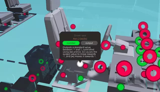 如图所示:西部最快的电工?还是只是个反恐精英玩家?你来决定。 数据逻辑 由于画面会变得杂乱,用图像来描绘逻辑非常困难。请尽力跟上思路!既然你已经了解了如何使用逻辑工具连接逻辑节点,我们可以继续学习更复杂的内容了。没有数据逻辑,我们的船可能就只是一块会漂浮的带燃料的砖头。我们需要一种方式来告诉船只,当我们坐在驾驶座上按下移动键时该做什么,或者当我们使用按键按钮时希望发生什么,又或者哪个表盘应该显示电池电量、哪个应该显示燃料量,诸如此类的事情。开始操作前,请确保已选择屏幕顶部的【逻辑工具】,并在左侧选中【数据模式】。此时,只有具有某种逻辑连接的方块以及各种彩色圆圈和圆点会显示出来。如果您有某种形式的色盲,或者难以区分红色和绿色的圆圈及圆点,可以在暂停菜单的【设置】►【常规】►【辅助功能】►【颜色方案】中更改颜色。截图和所引用的颜色将使用【经典方案】。 数据逻辑节点 您可能想知道这些圆点和圆圈究竟有什么作用。数据逻辑有两种类型,逻辑节点也有两种类型。圆点代表【输出端】,圆圈代表【输入端】,逻辑从【输出端】流向【输入端】。一个输出端可以连接任意数量的输入端,但输入端只能接受一个输出端的连接。输入端不能与其他输入端相连,输出端也不能与其他输出端相连,逻辑仅沿一个【方向】流动。