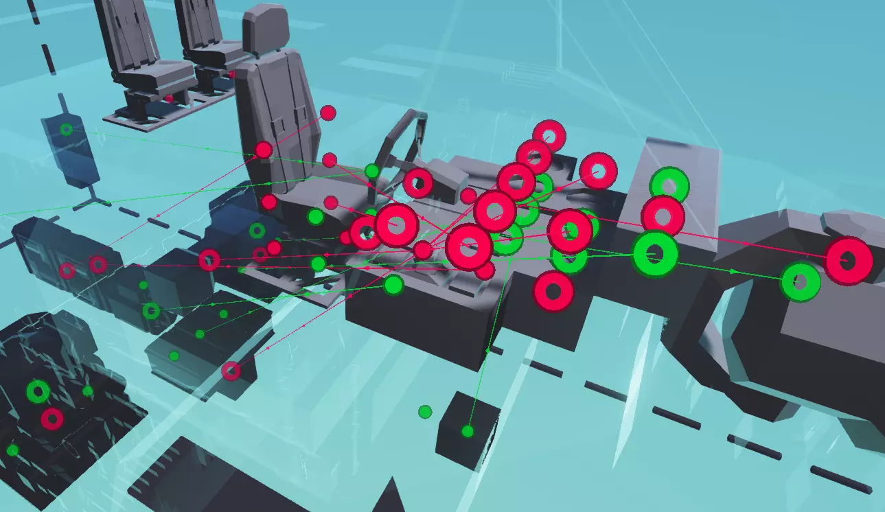 将仪表显示器直接放在中央位置,如果使用驾驶座的话,就在方向盘正前方,水平的白色和红色条都应朝向方向盘。在仪表左侧放置3个仪表盘。在仪表显示器右侧,靠下方位置放置一个切换按钮,靠前方位置放置一个指示灯。在切换按钮右侧放置一个油门杆。 在仪表盘正面,方向盘柱的两侧各放置一个切换按钮和一个钥匙按钮,两者都朝向驾驶员。最后移除大型斜窗下方的3个方块,在左侧放置一个数字显示屏,且加号朝左,然后在其右侧、指示灯上方放置最后的仪表盘。我们不会使用节流杆来控制发动机的油门,而是用它来控制离合器的离合压力。不过,在本指南中,该部件仍将被称为节流杆。要知道,尽管它的名称如此,但它的功能不仅仅是控制油门。 仪表属性 现在让我们更改所有这些仪表的属性,使其真正发挥作用。使用屏幕顶部的选择工具(不是选择网格工具)并更改每个仪表的属性,为它们命名并将最小/最大值调整为合理数值。以下是推荐属性表格: 仪表 最小值 最大值 初始值 灵敏度 保持时间 离合器 0 1 0 80% 发动机 0.2 油门/离合器 0 1 转速表 0 16 发动机温度 5 100 电池 0 1 燃油 0 1125 如果不更改表盘的最小/最大值,指针会随着数值变化而剧烈转动,但游戏内提示框仍会显示正确数值。 舵轮属性 既然我们在这里更改属性,不妨也调整一下驾驶座的设置。这些设置可能不会立即生效,但最终会起作用。大多数默认设置可以保留,但以下是需要更改的设置: 控制标签模式灵敏度:轴2 重置 100% 轴3 泛光灯粘性 8% 热键1 低速/高速档位切换 热键2 离合器接合 按下 热键3 离合器分离 按下 你也可以根据个人喜好交换热键2和3,或将标签更改为你能理解的内容(如离合器上/下、进/出、上箭头/下箭头等),只需确保切换/按下模式正确即可。“标签”是坐在驾驶座上并按H键切换时,在载具控制帮助中显示的内容。留空将完全隐藏该控制的提示。 灯光、螺旋桨、方向舵和涂装