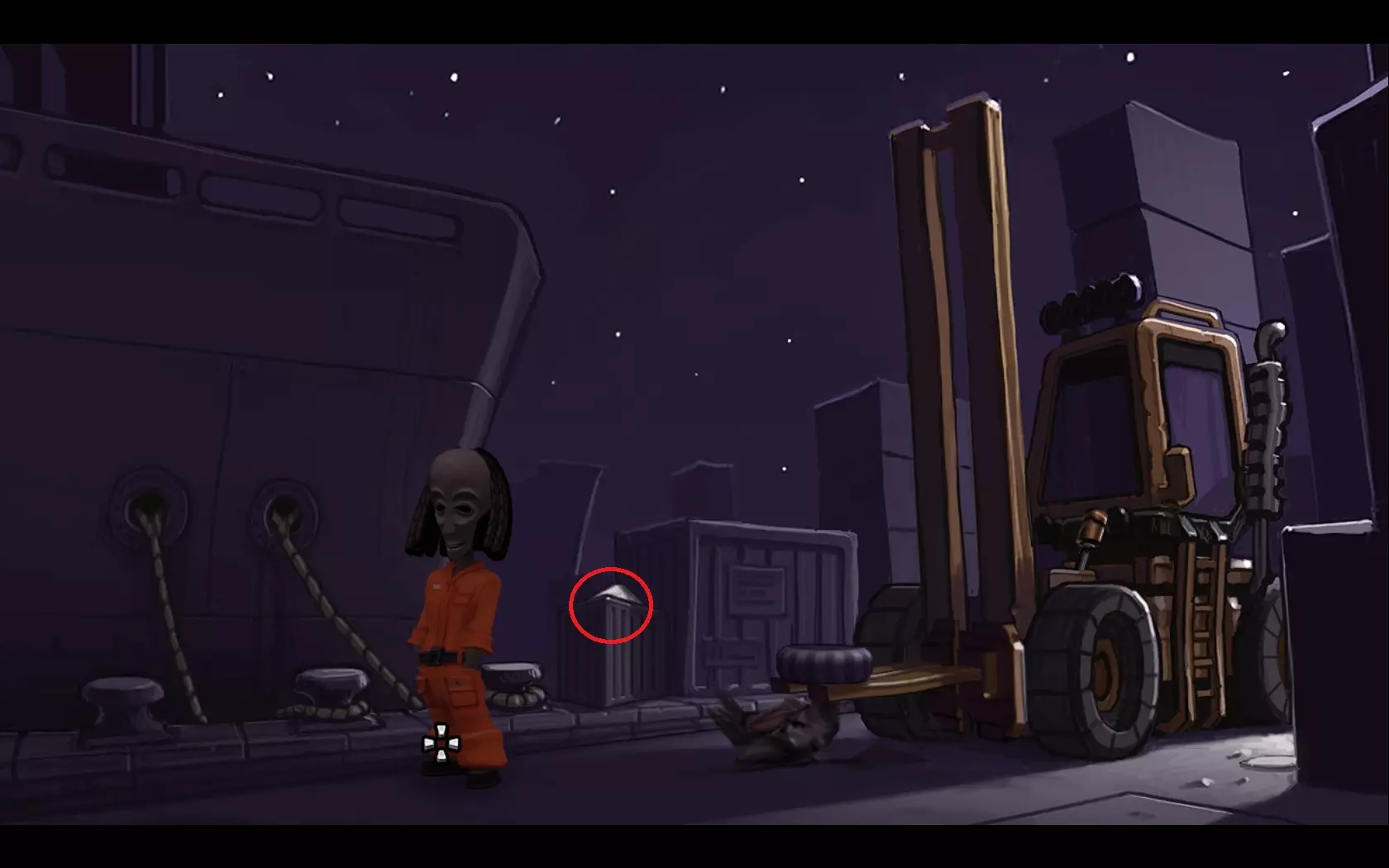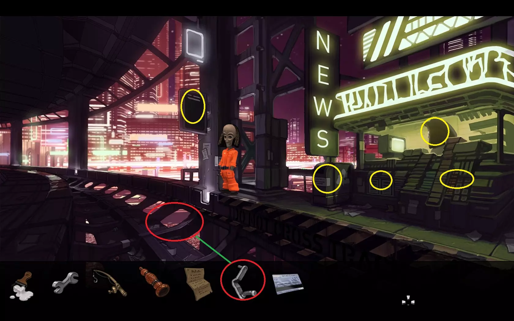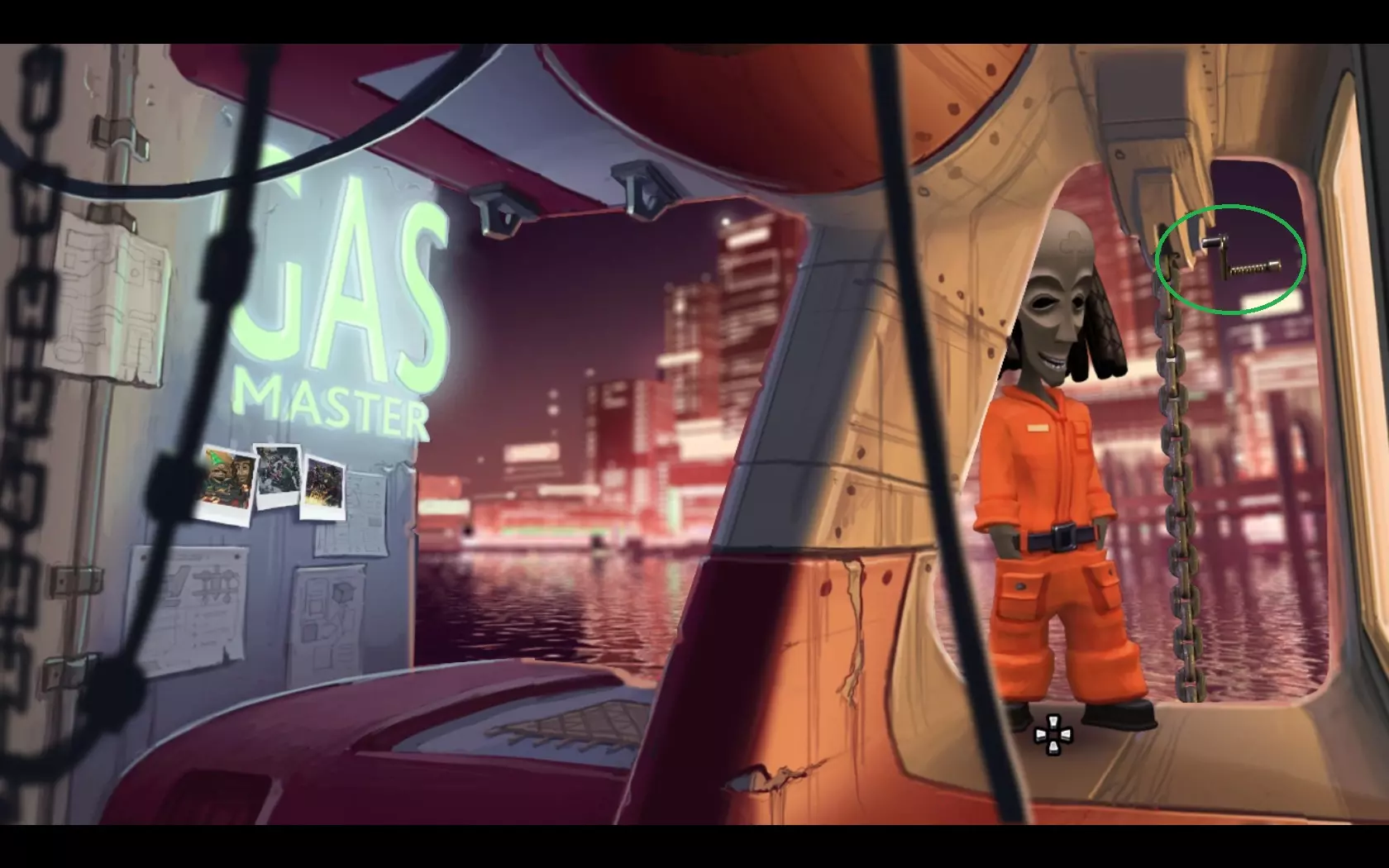 - 检查垃圾并拿起钩子。 - 将钩子装到鱼竿上。 - 返回飞机处并进入屋子。 - 用鱼竿勾天花板上的风扇。 - 你会得到损坏的螺旋桨。 - 回到电车车站。 - 走向船只。