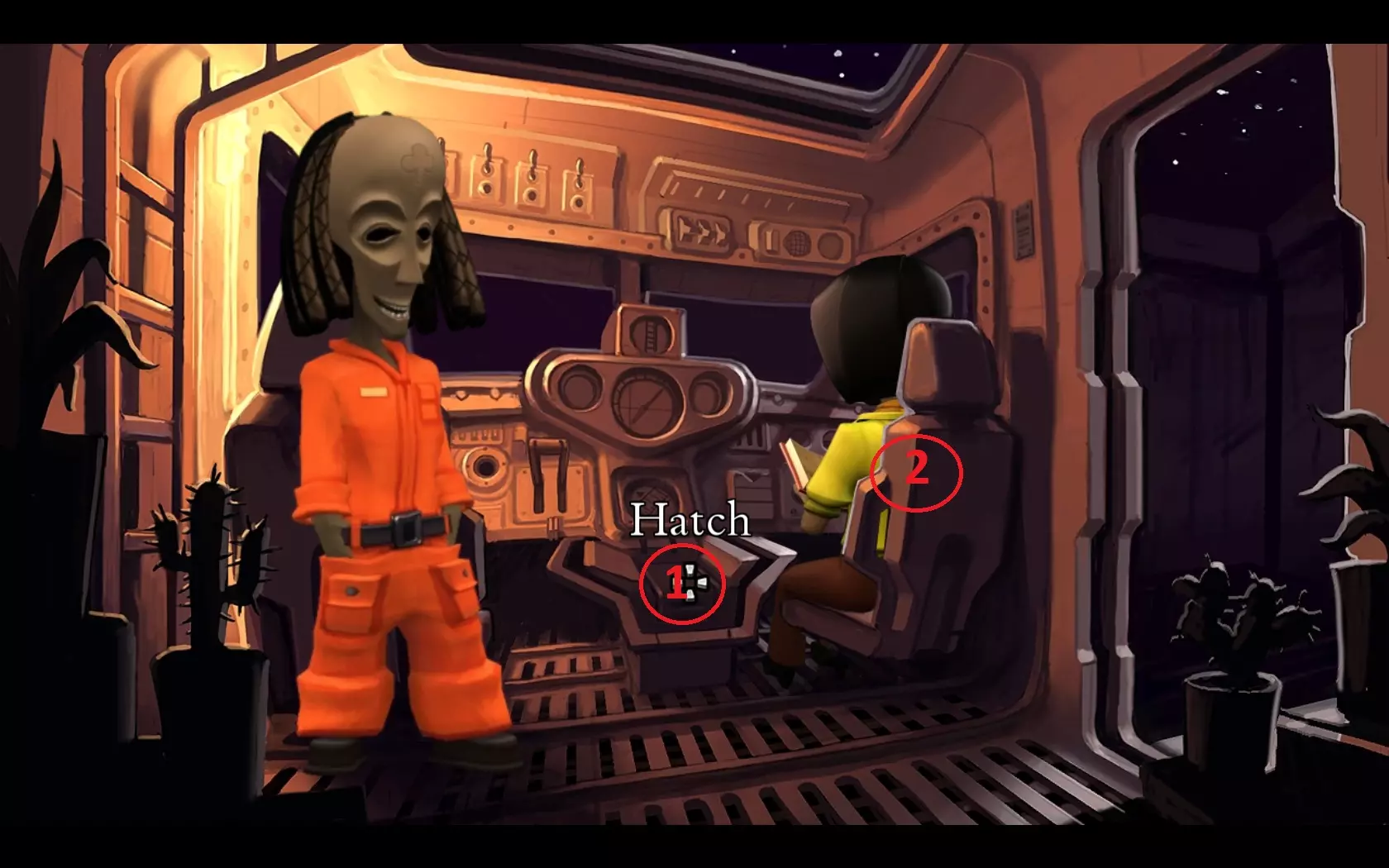 - 打开箱子(1)并拿起扳手 - 和莉娜(2)对话,了解背景故事 - 进入飞机的右侧机翼