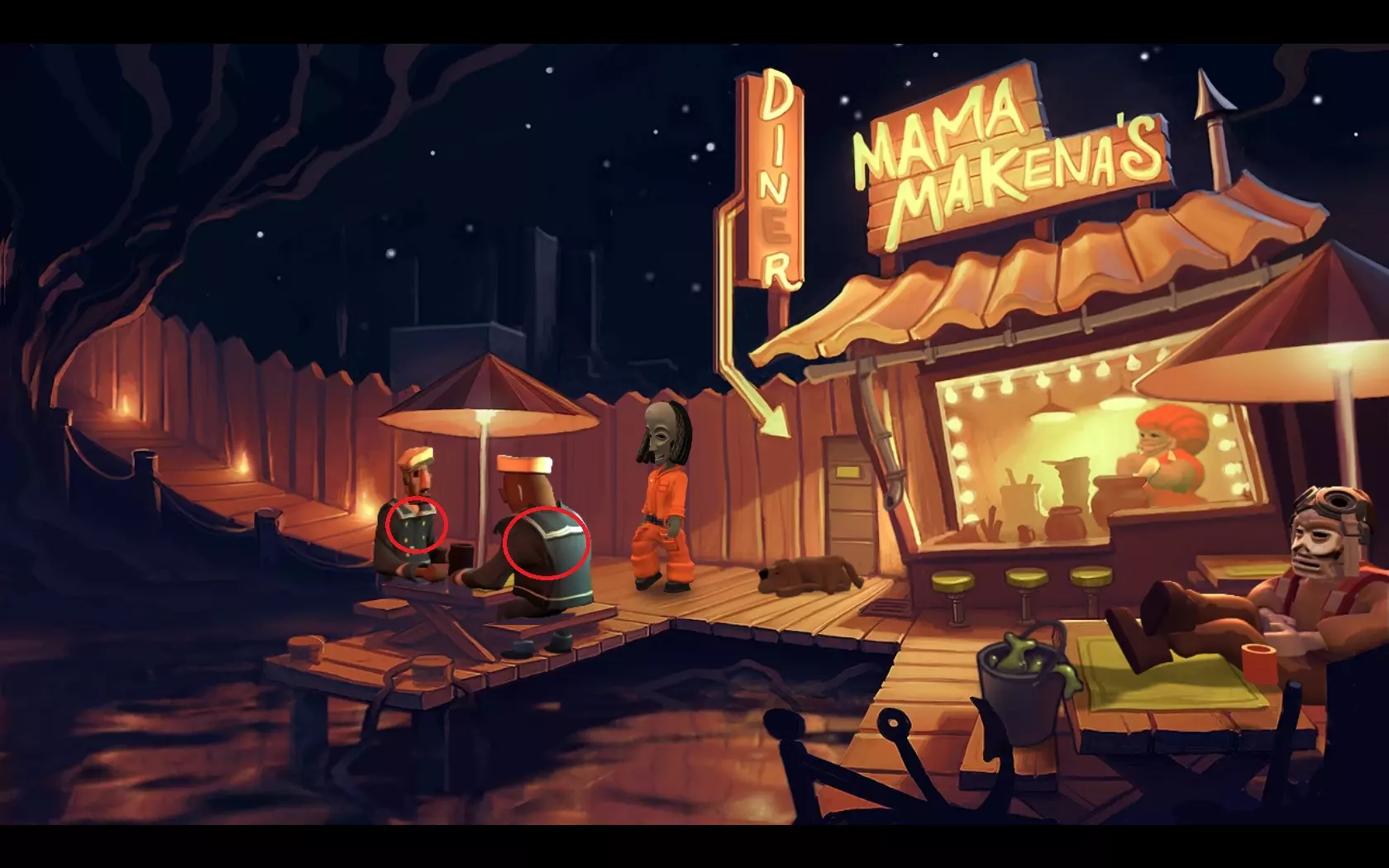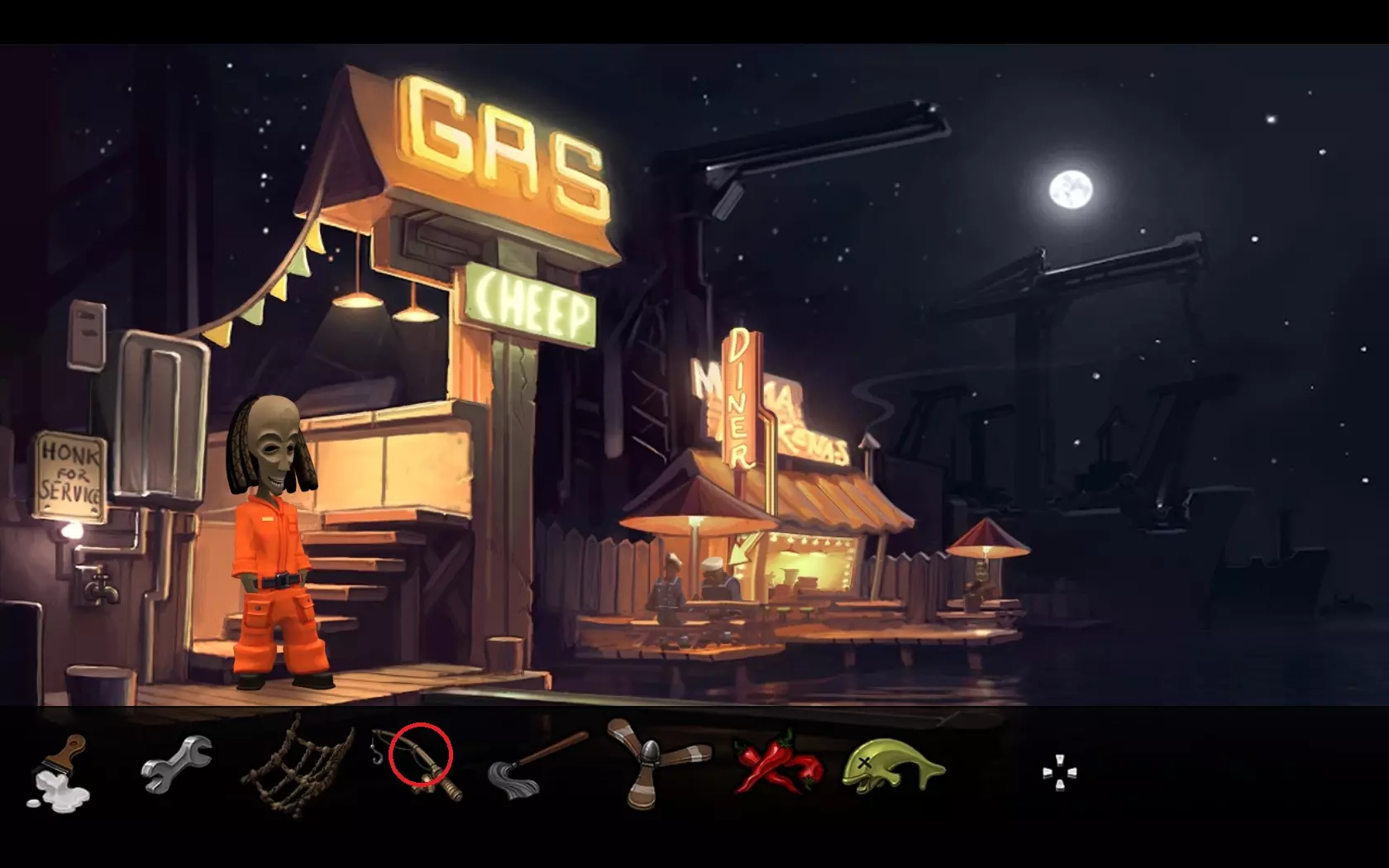 - 将起重机手柄放在铁轨上,等待火车。 - 返回电梯并向下行驶。 - 进入飞机,走到机翼上。 - 将起重机手柄放在链条顶部的起重机上,按下以提起锚。 然后观看最终过场动画! 09. 总结(作者评论) 目前冒险类游戏佳作较少。而最善良、机智且令人难忘的角色更是寥寥无几! 这款游戏的剧情简单直接,并不复杂。主角是拉斯塔法里教徒布瓦纳,他和朋友基托一起在圣阿曼多市郊区金斯波特湾的一个偏僻角落经营着一家加油站。我在游戏中首先注意到的是它的风格——让我想起了经典游戏《冥界狂想曲》,要知道即便是在1998年,《冥界狂想曲》的场景设计也足以超越当时的许多冒险游戏。游戏角色的面部采用了非洲面具的设计,而对于布瓦纳和基托这两个角色,其设计更是直接以真实面具为基础。