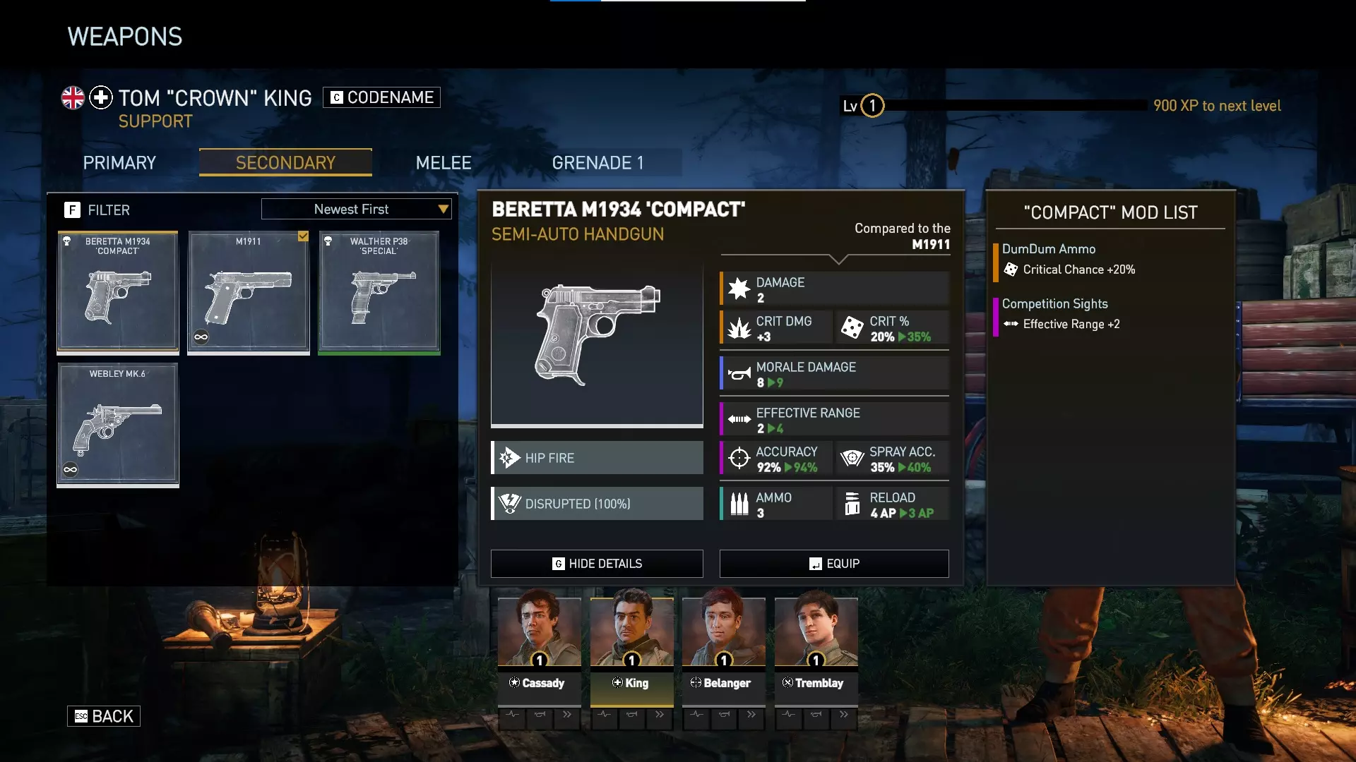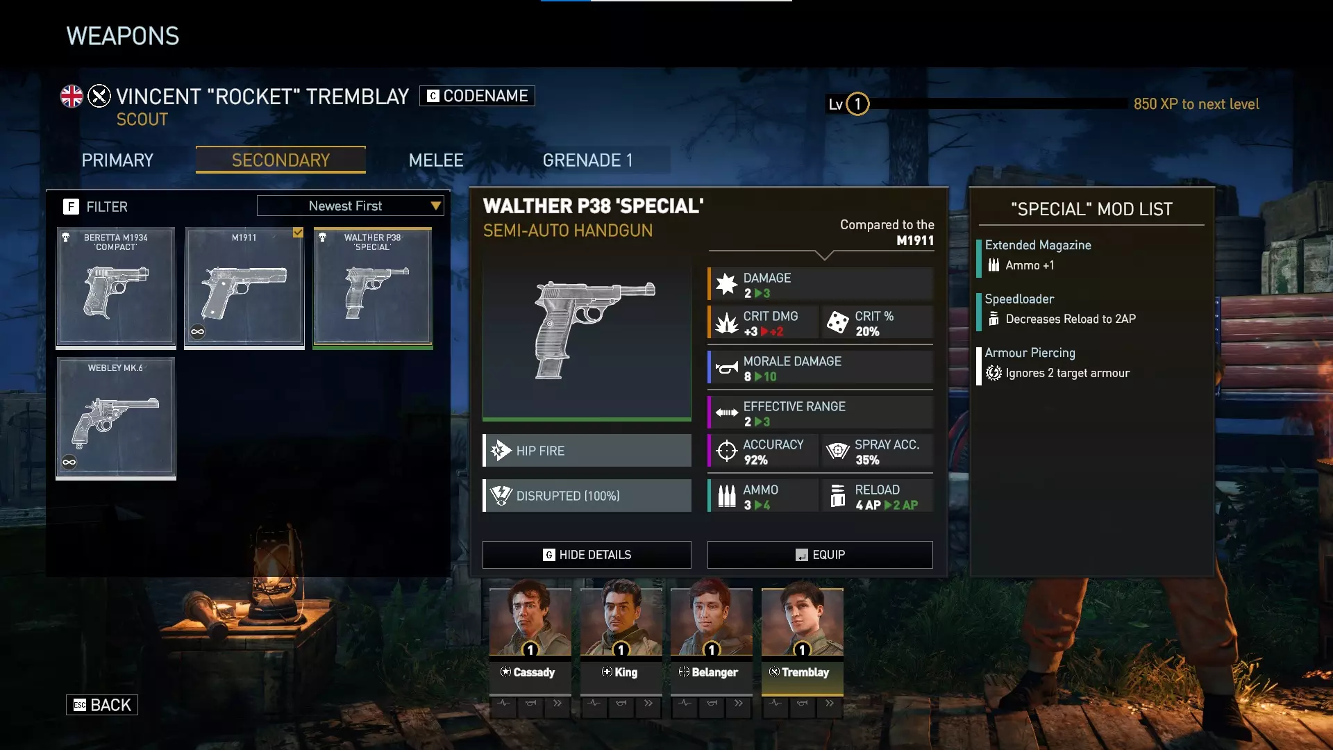 绿色等级的瓦尔特是DLC中可用的最强副手枪。它基础伤害更高,但暴击伤害较低。这意味着暴击时造成的伤害相同,但非暴击时造成的伤害更高。 与基础M1911相比,瓦尔特还拥有更高的士气伤害、更远的有效射程、更多的弹药、更低的装填消耗以及2点穿甲值。 瓦尔特比特工包中的贝雷塔“紧凑型”更好,不过贝雷塔仍然有用,因为你的任务小队所有4名成员都可以装备副手枪。