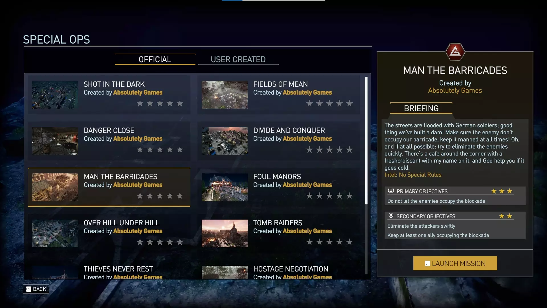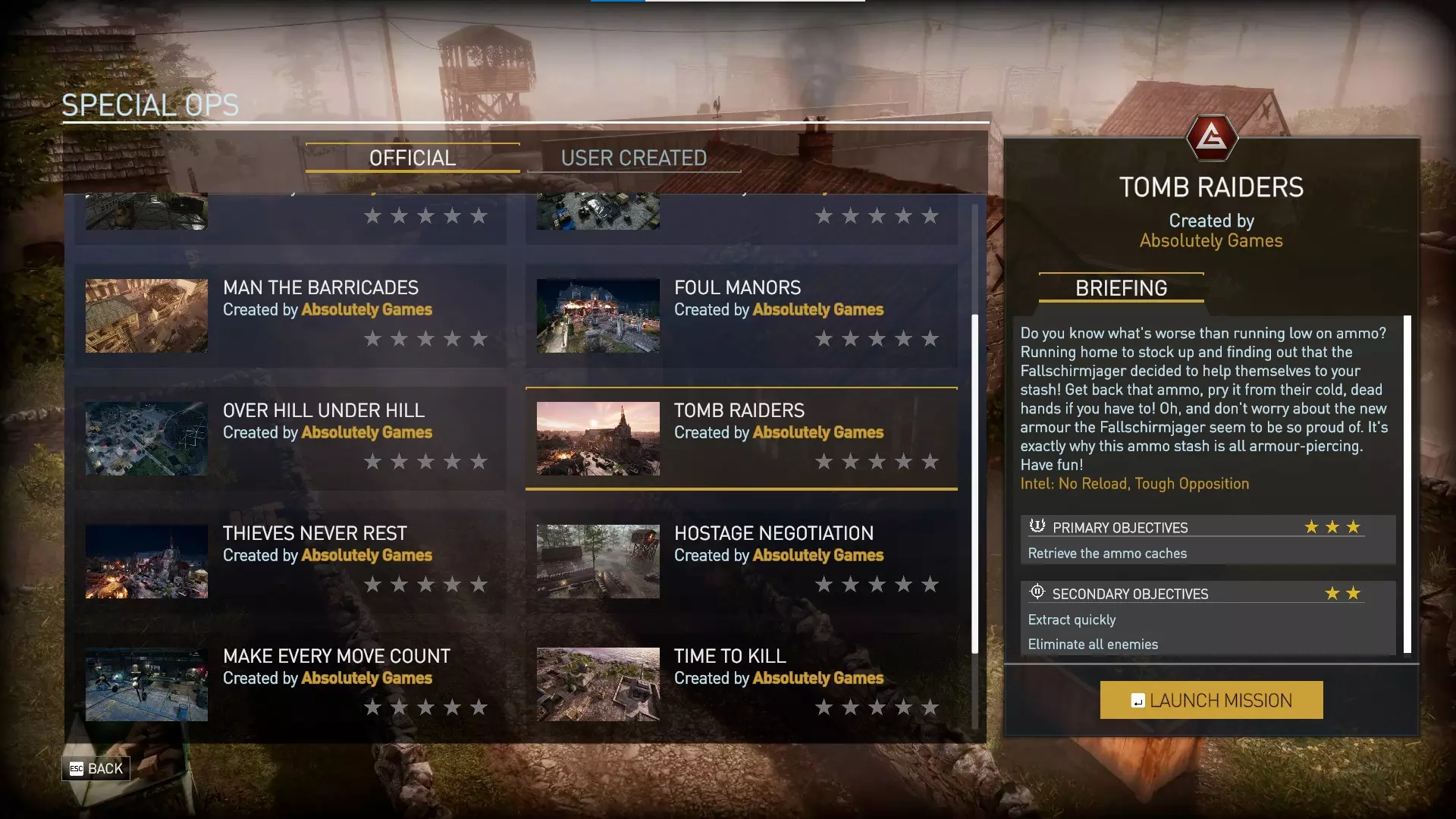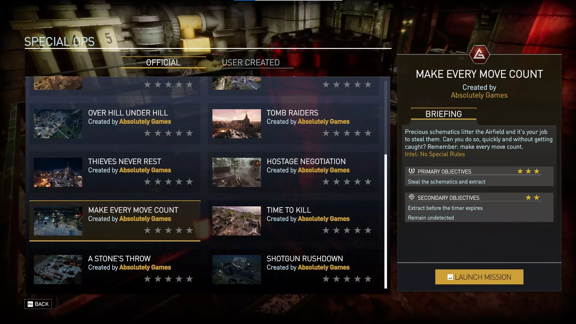 以下是两个特种行动场景。 尽管DLC描述中将第二个特种行动称为“Make Every Kill Count”,但其实际名称为“Make Every Move Count”。该特种行动似乎还存在一些自定义修改,例如【决一死战】技能(通常为神射手专属)会出现在你的两名角色(侦察兵文森特和穆萨)身上。