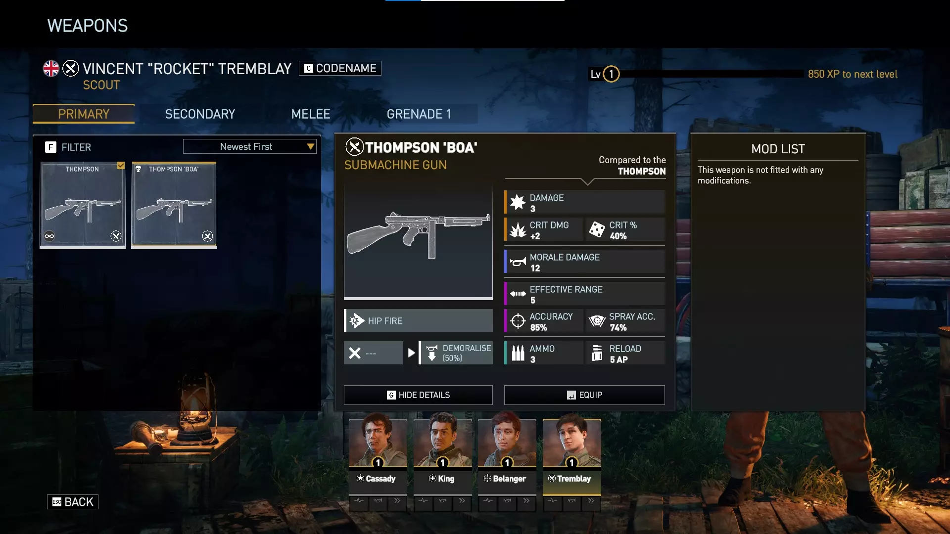 这是目前侦察兵可用的唯一DLC主武器。与侦察兵常用的普通汤普森冲锋枪相比,汤普森蟒蛇冲锋枪有50%的几率对敌人施加【士气低落】状态(士气低落的单位受到的士气伤害增加100%)。
